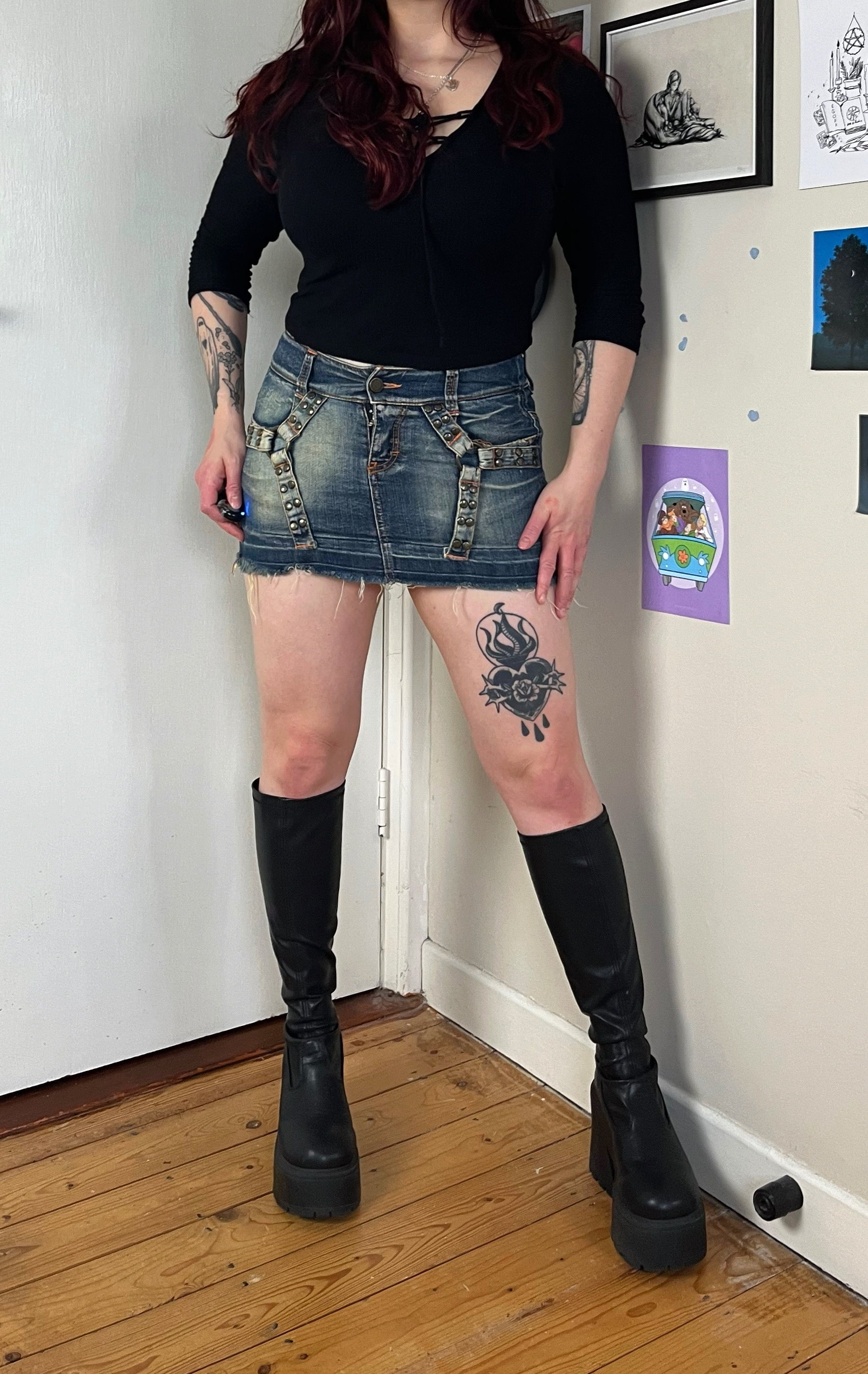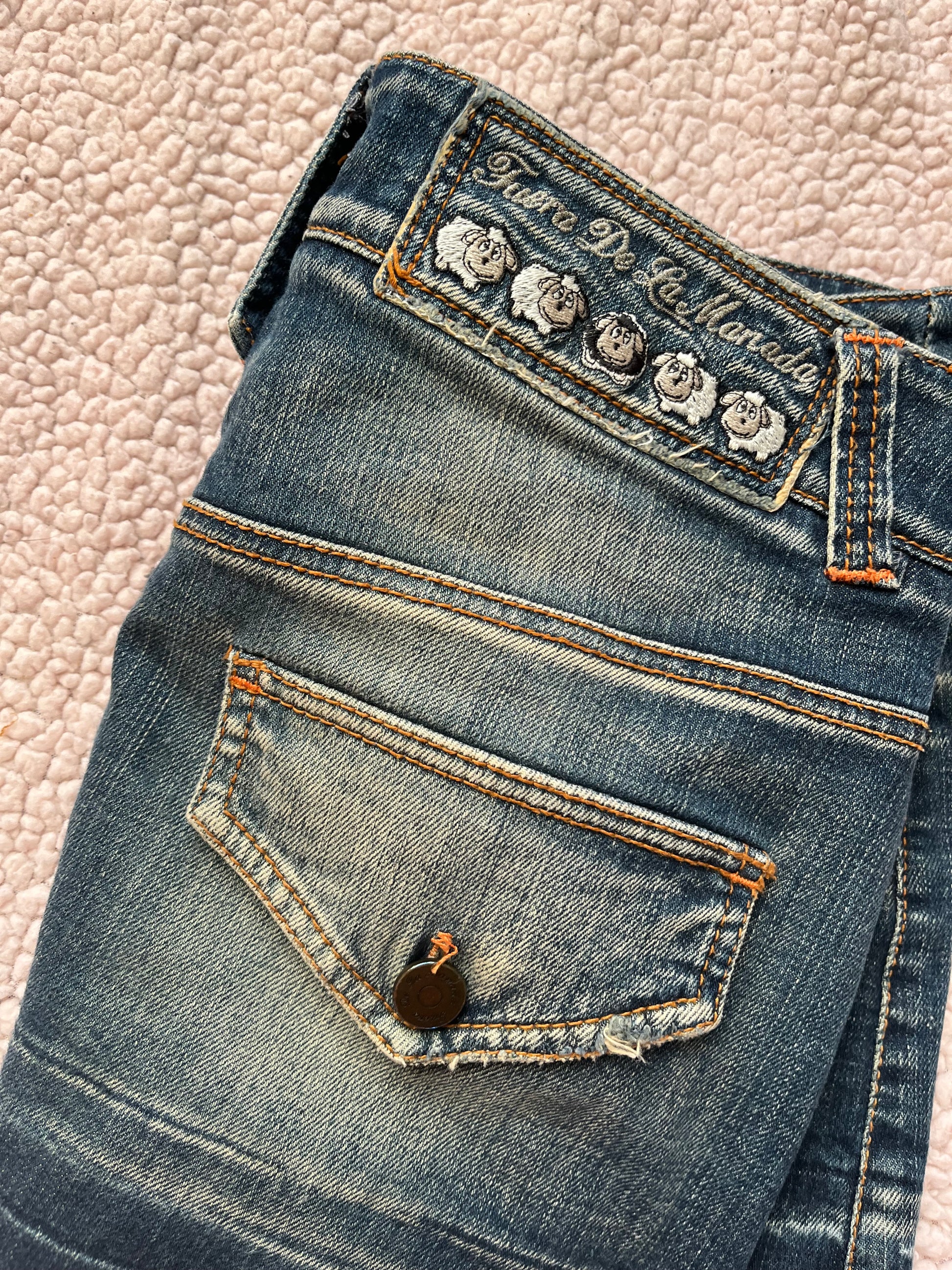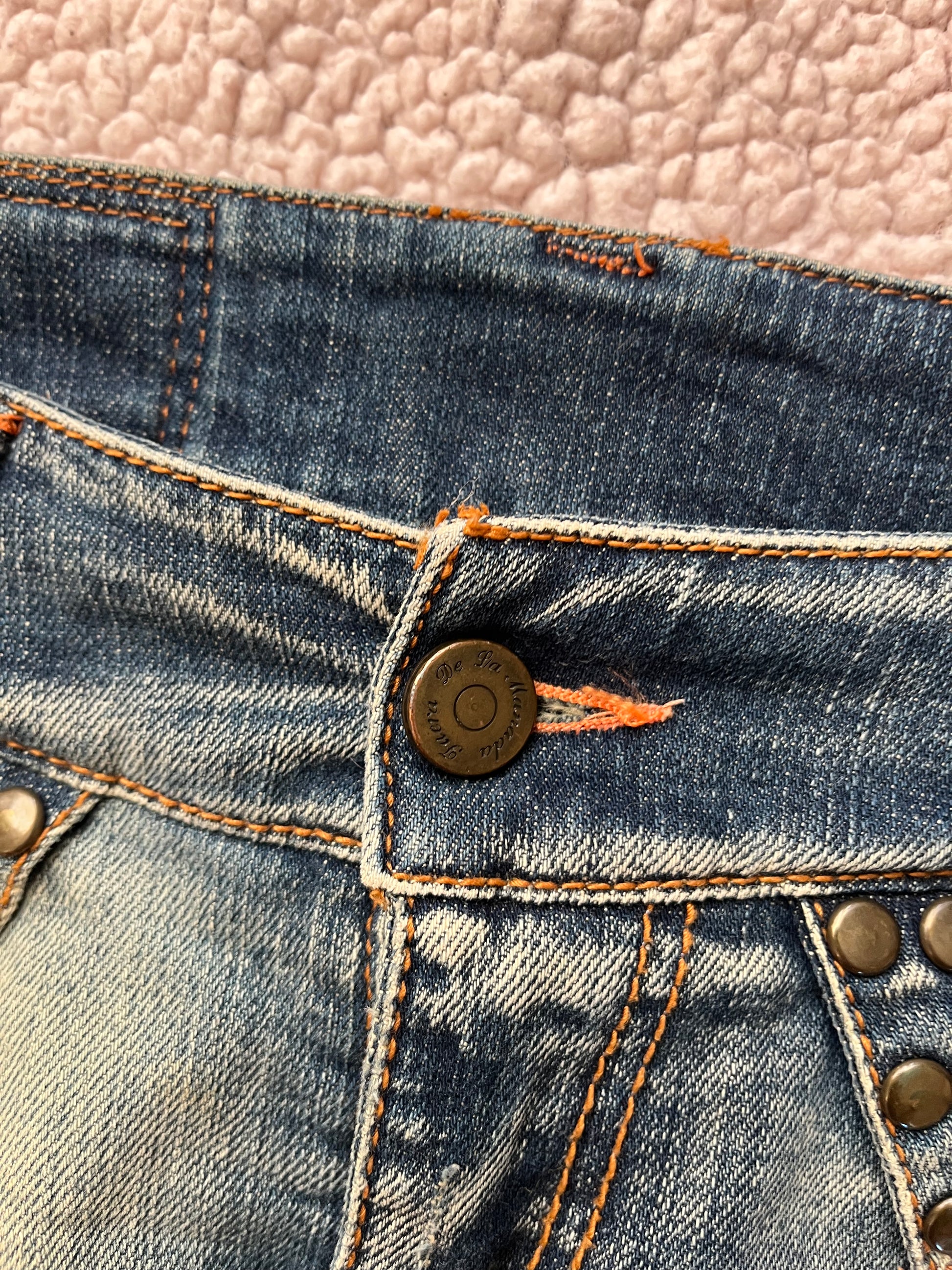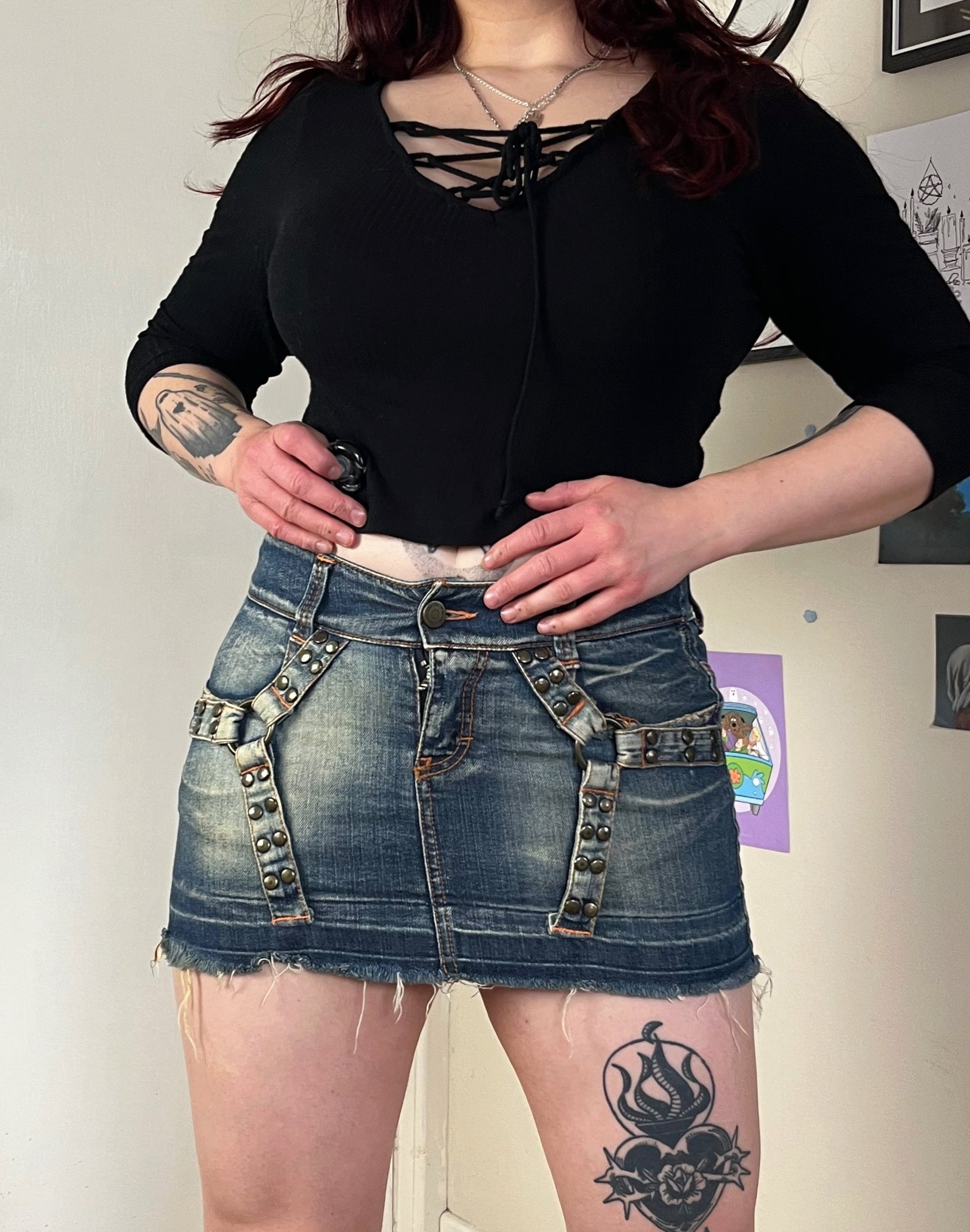 2000s denim mini skirt! Low waisted with a cool buckle design all over.