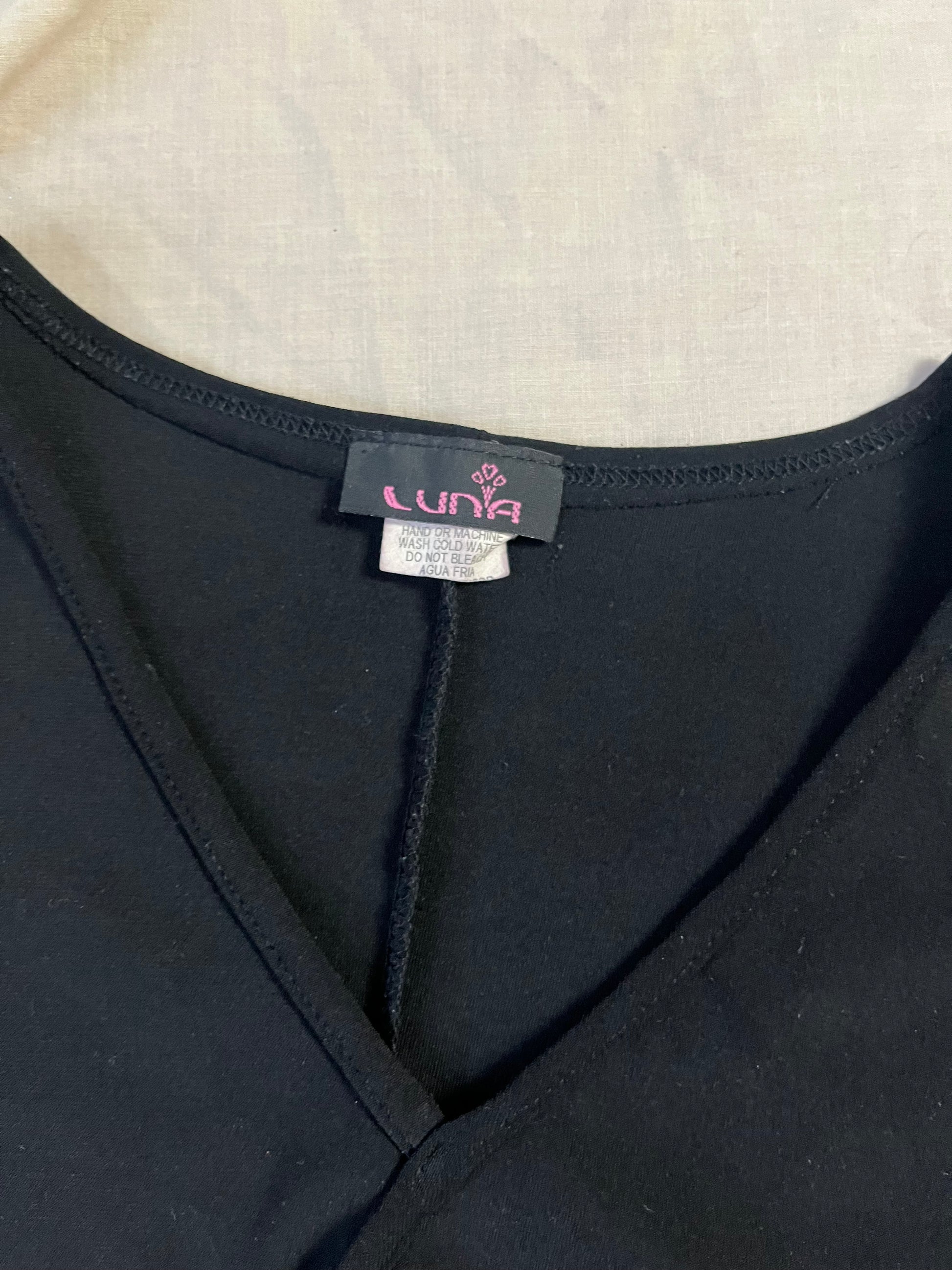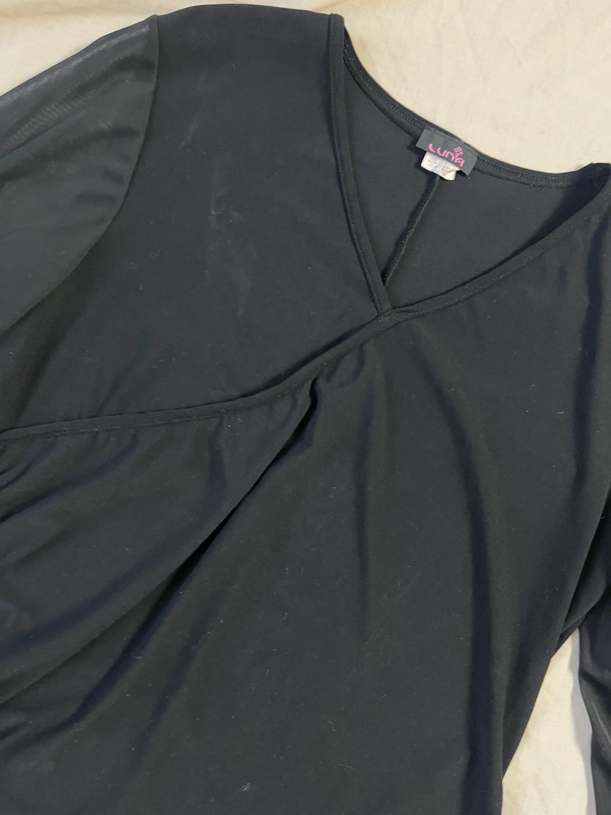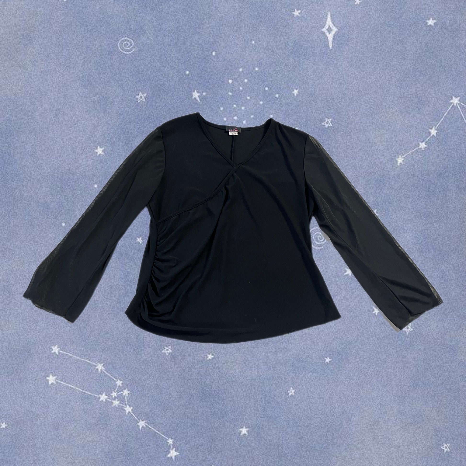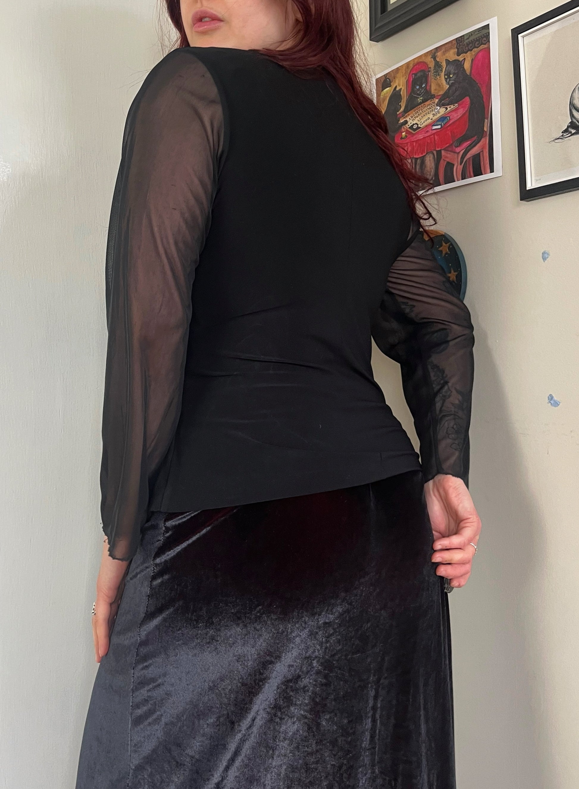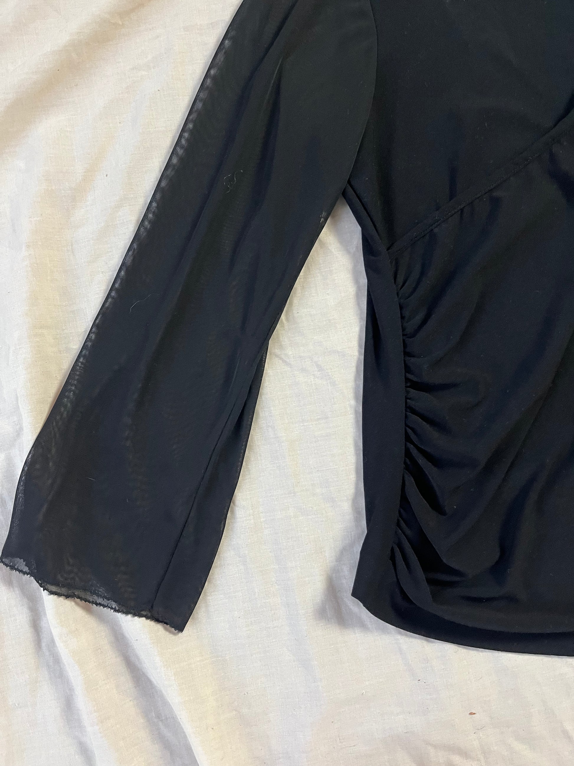 Gorgeous 2000s black top! Flared mesh sleeves with a flattering, stretchy fit.