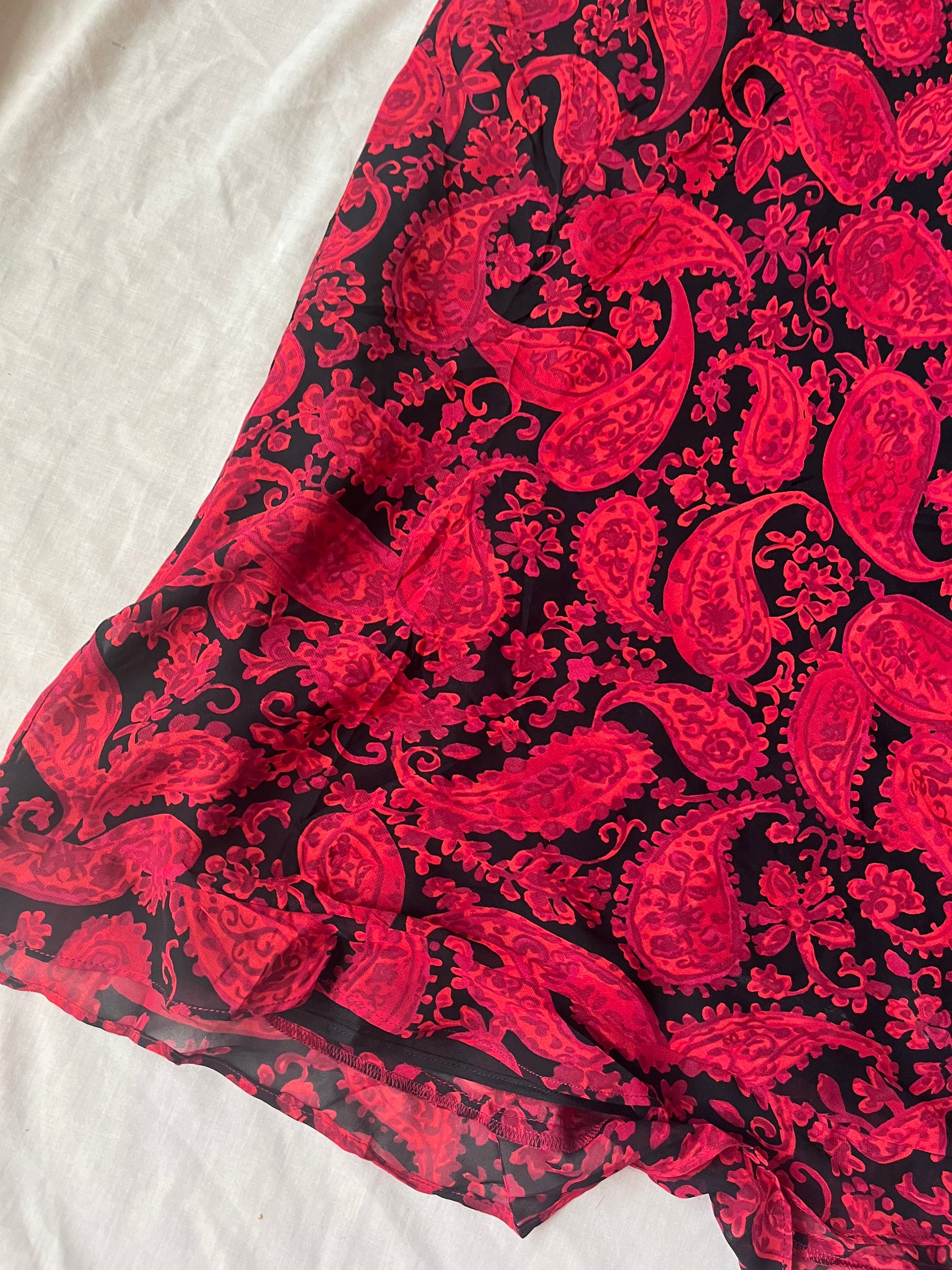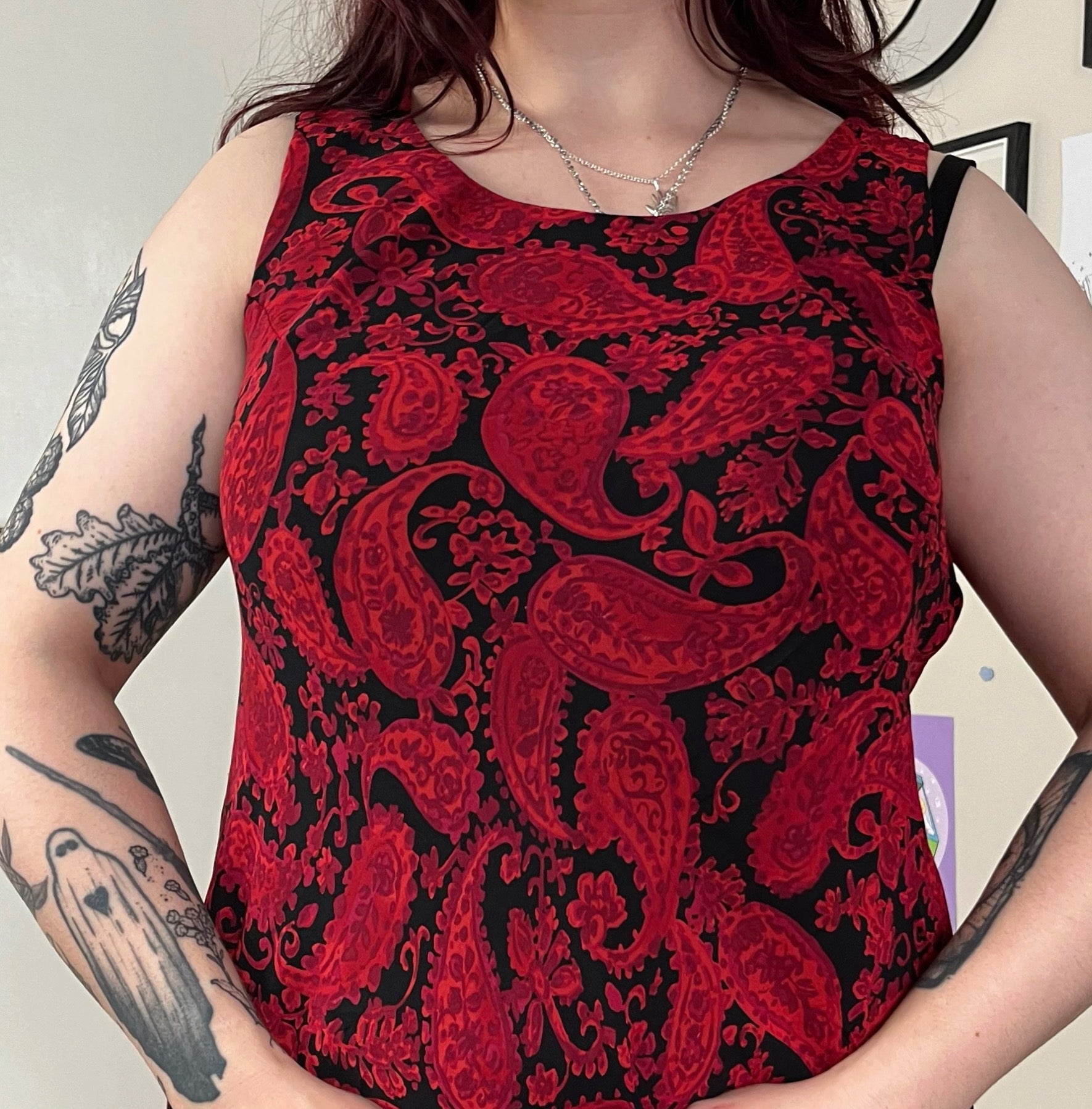 1990s black and red floral mesh maxi dress! Loose fitting and comfy
