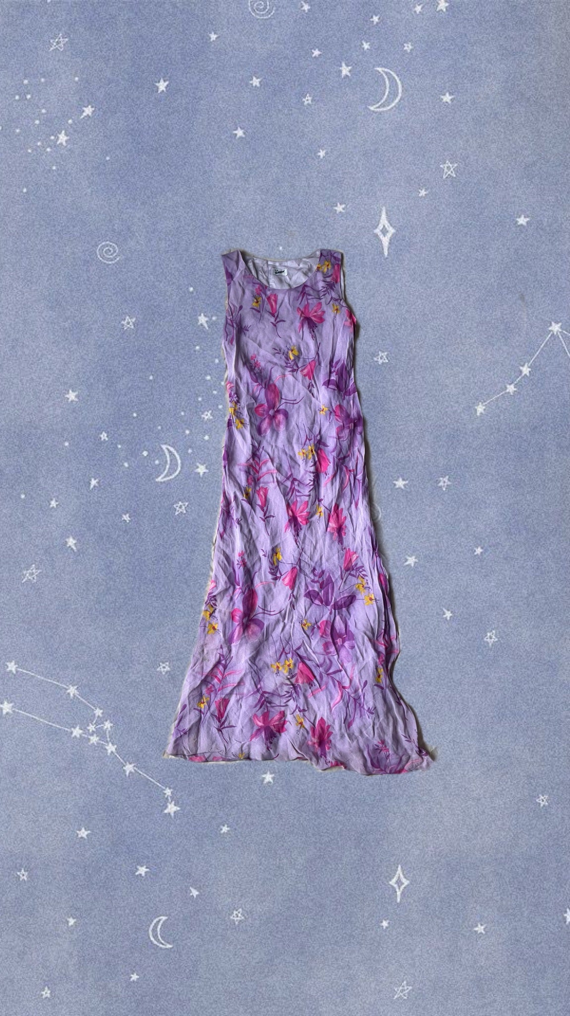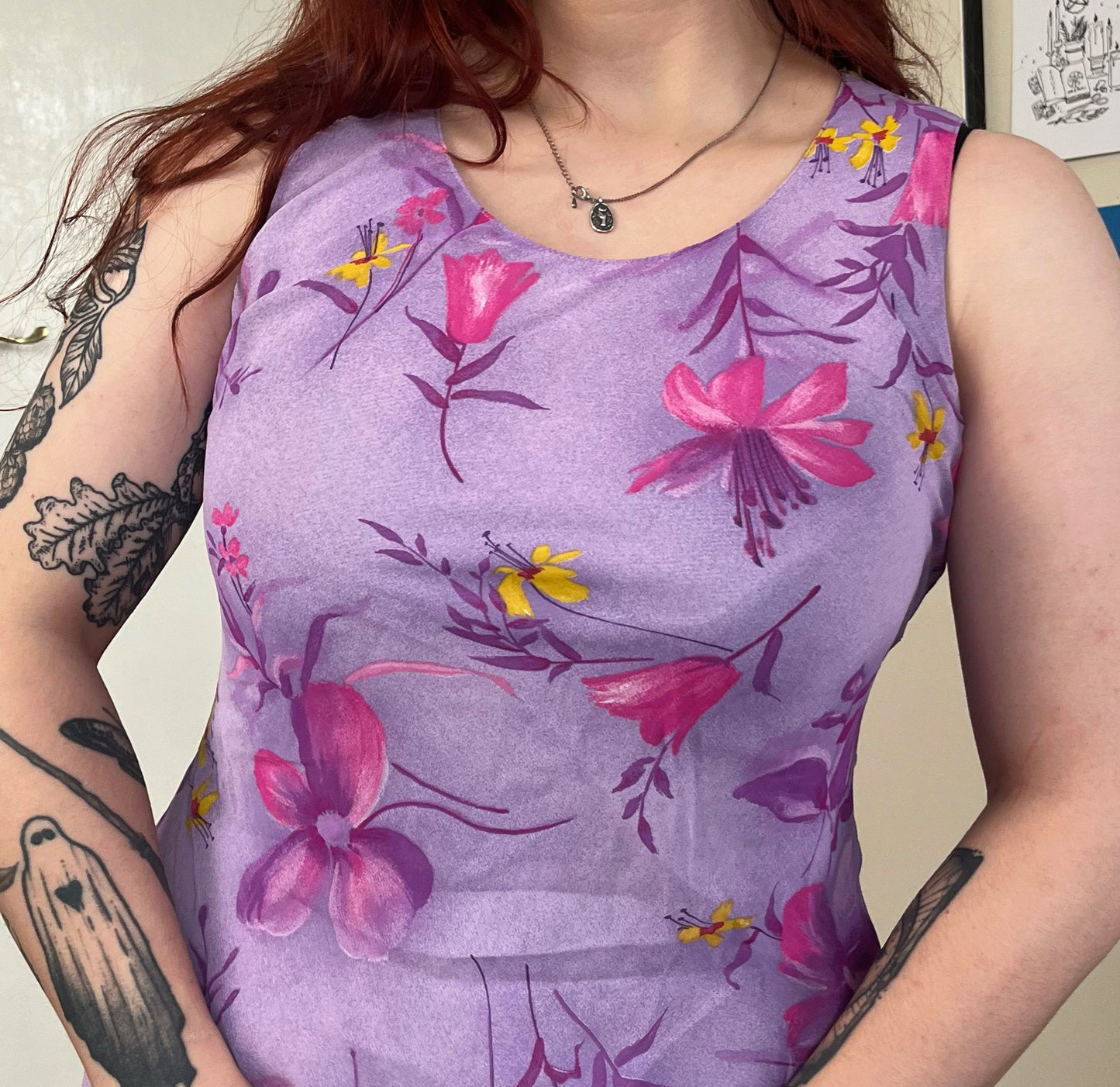 Gorgeous 90s purple floral pattern maxi dress! In perfect vintage condition and would best fit a UK 12.