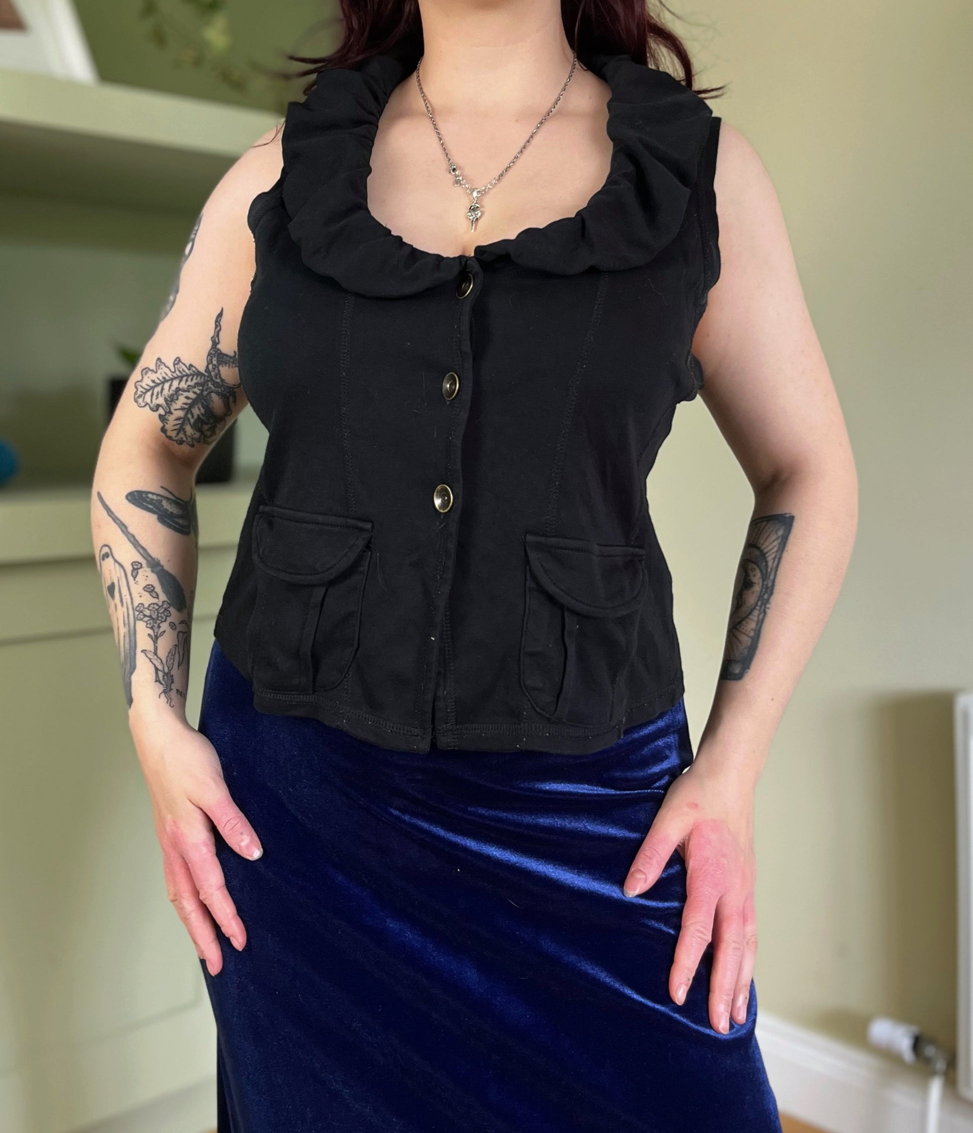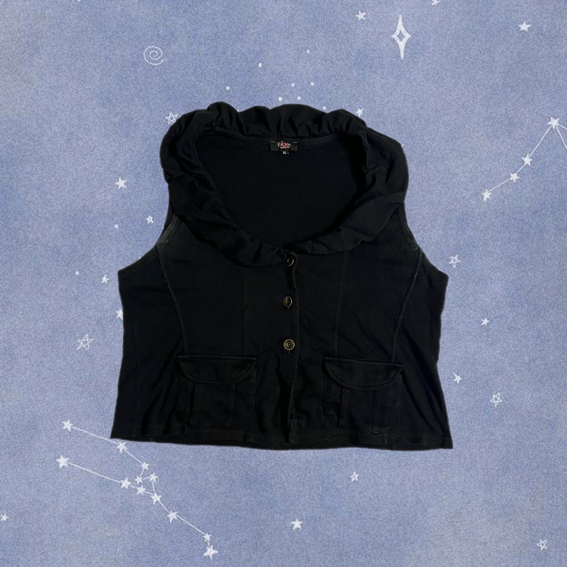 2000s sleeveless waistcoat style top! This has a button up front and pockets!