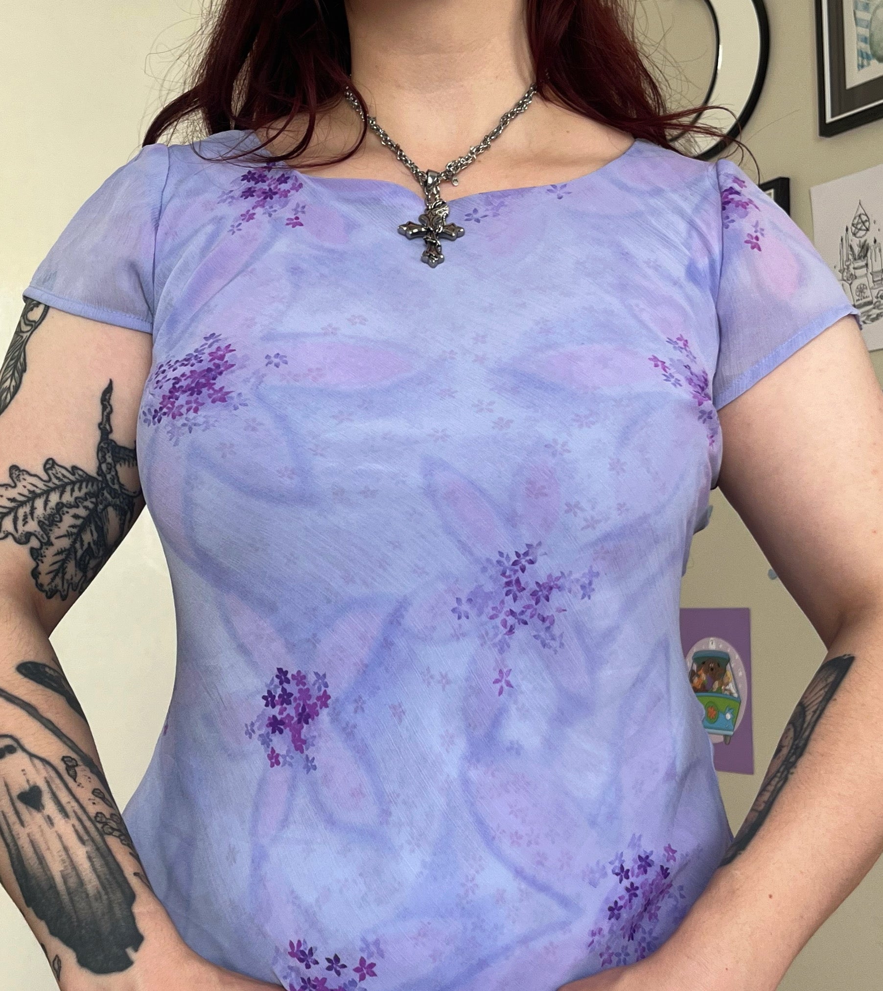 Amazing 1990s purple floral maxi dress! Zips up at the back and has a stunning pattern and flattering fit.