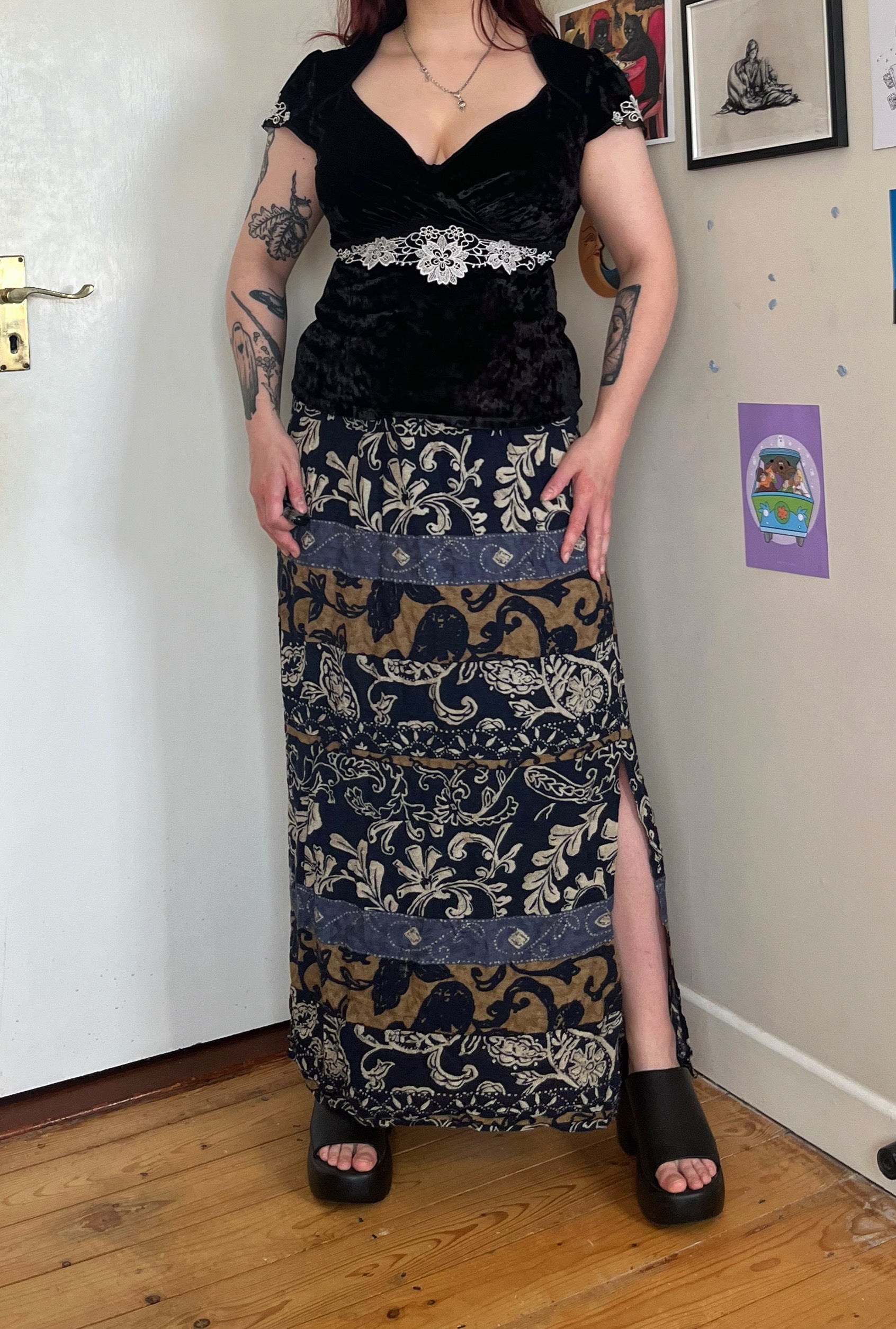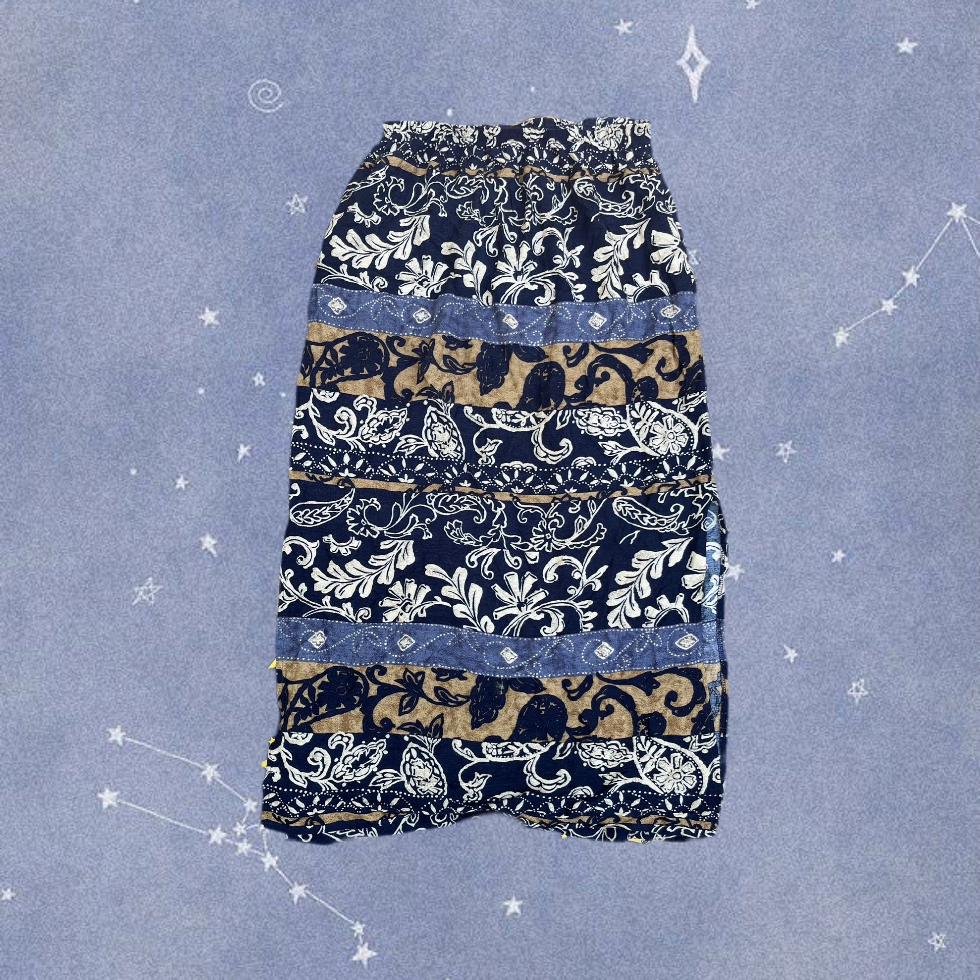 Amazing 2000s blue floral pattern cotton skirt! In perfect vintage condition and would best fit UK 10-14 as the waist can stretch.