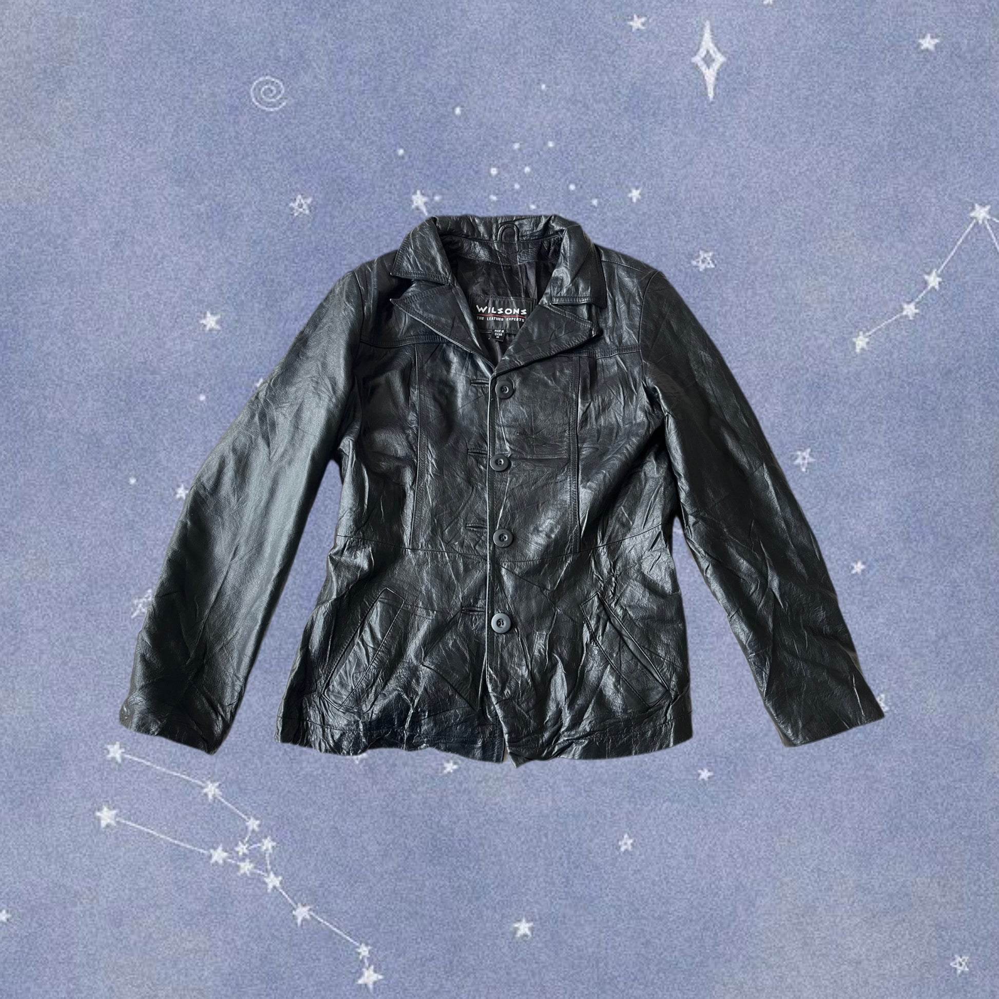 Amazing 1990s black leather jacket! Four buttons on the front with a flattering fit. In perfect vintage condition and would best fit UK 8-10