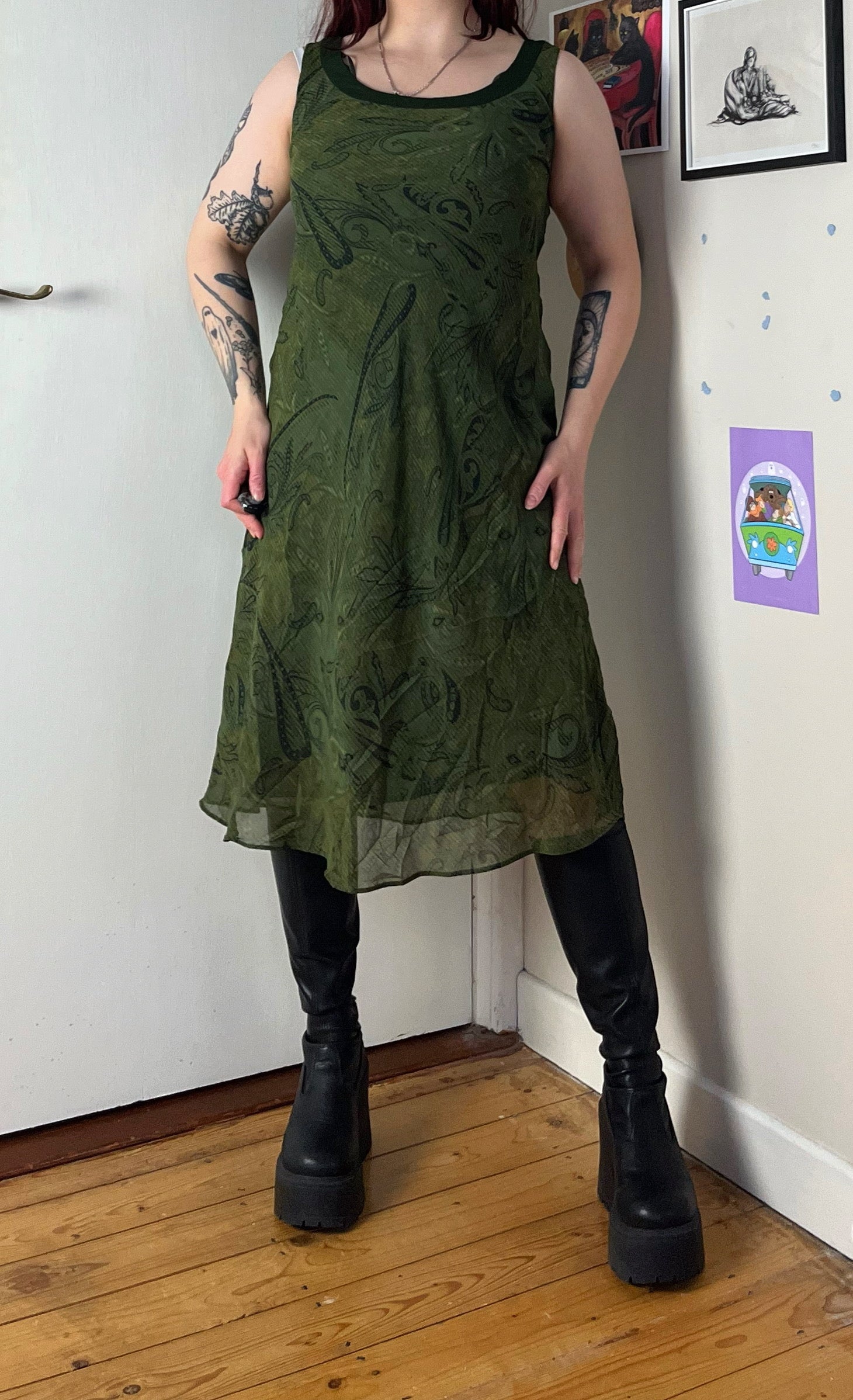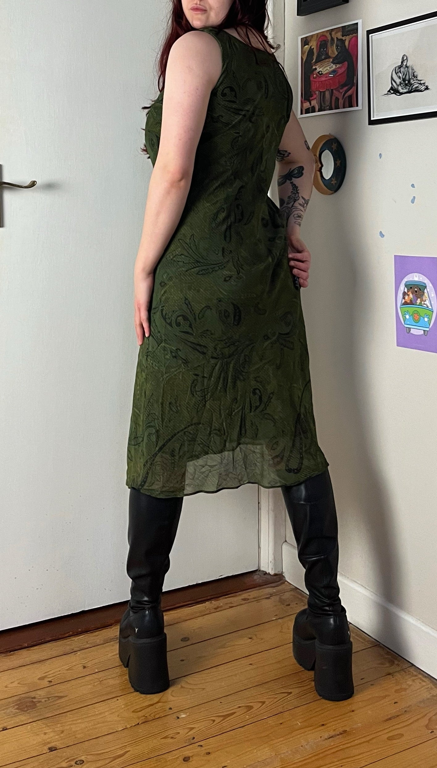 1990s green mesh maxi dress! Loose fit with a gorgeous design.