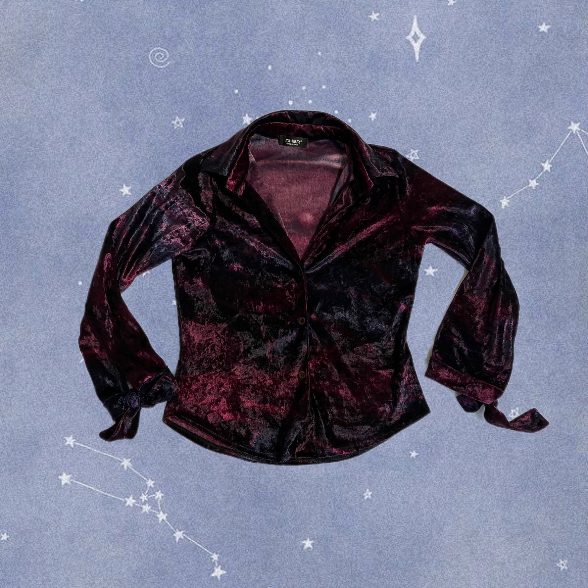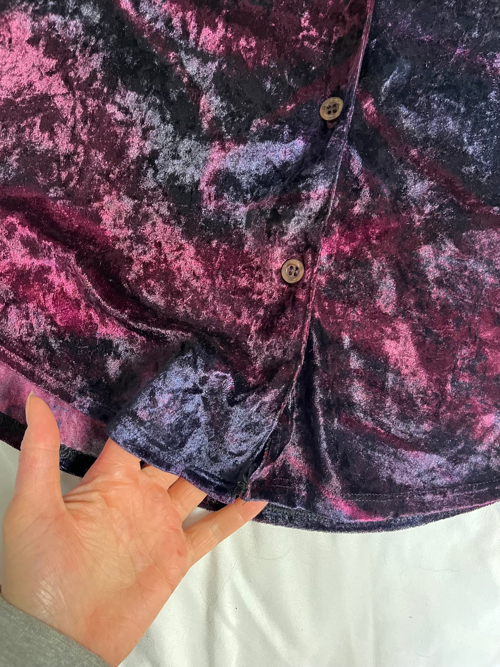 2000s purple velvet top! Button up front with a gorgeous pattern.