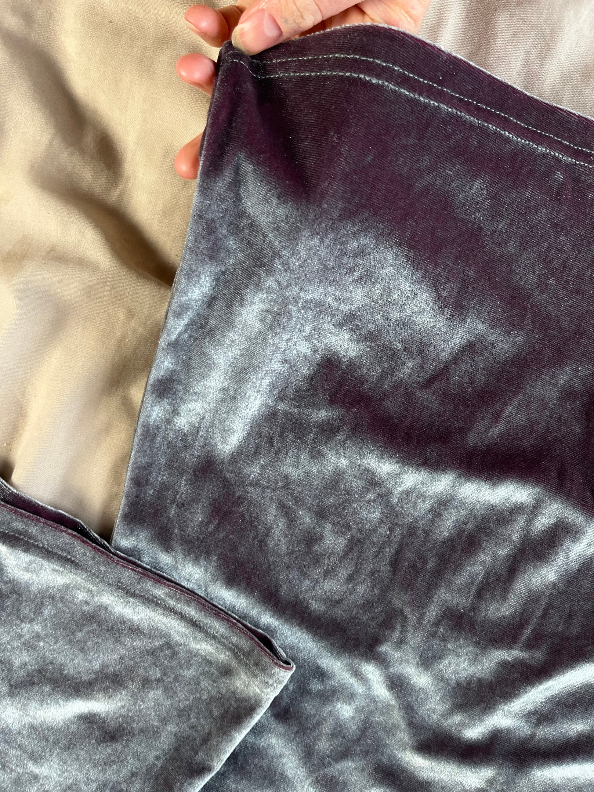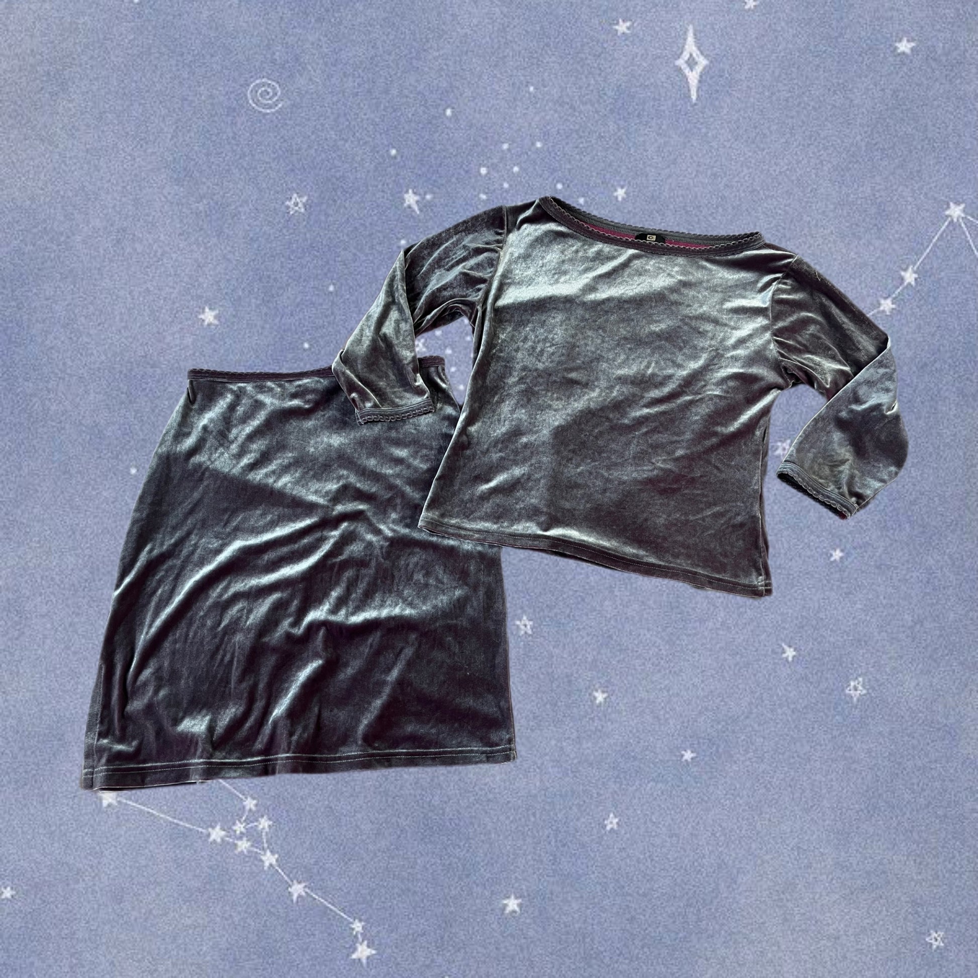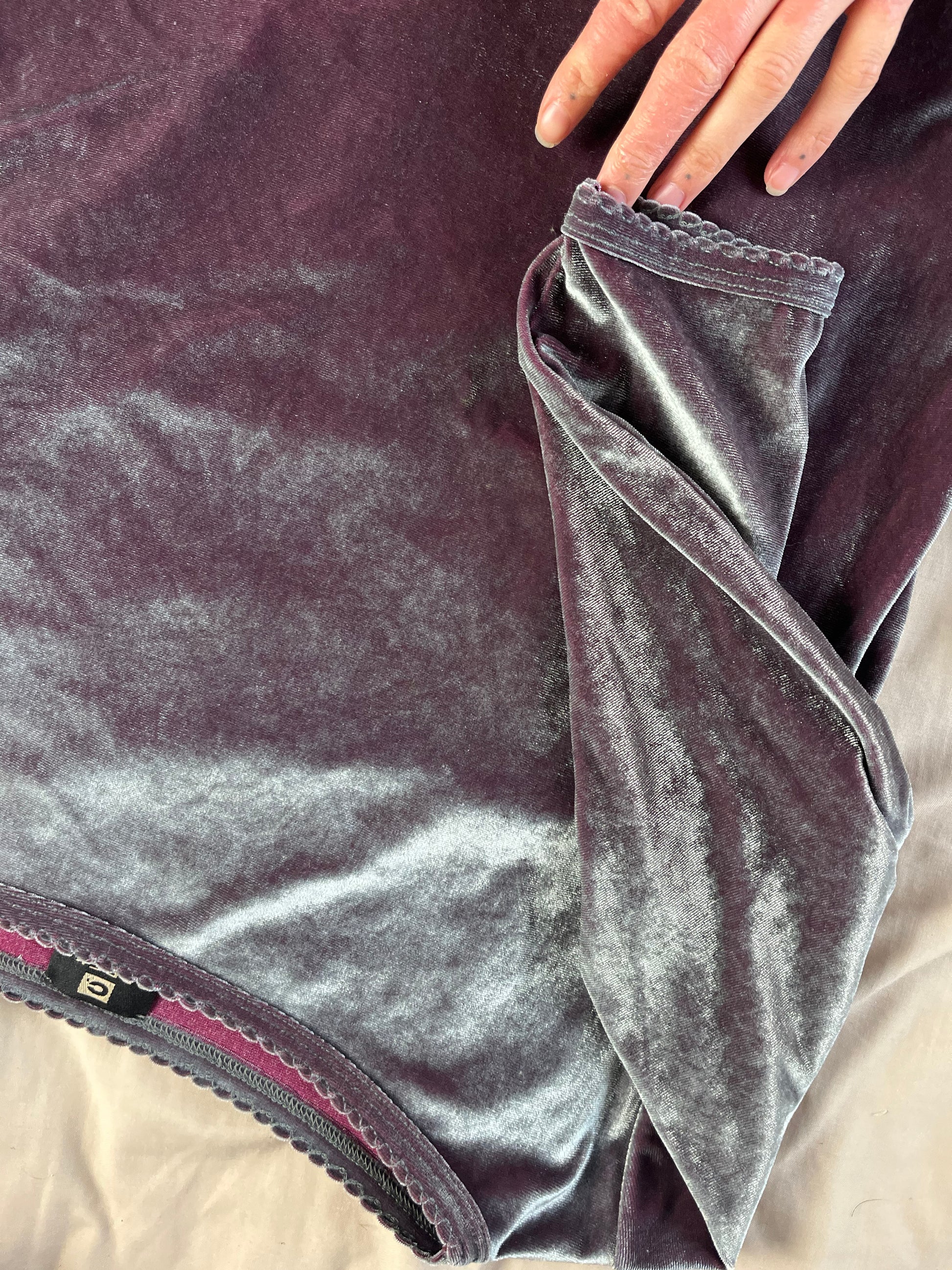 Stunning 1990s purple velvet set! This has a stretchy fit to it and is a silvery sort of purple, super gorgeous!