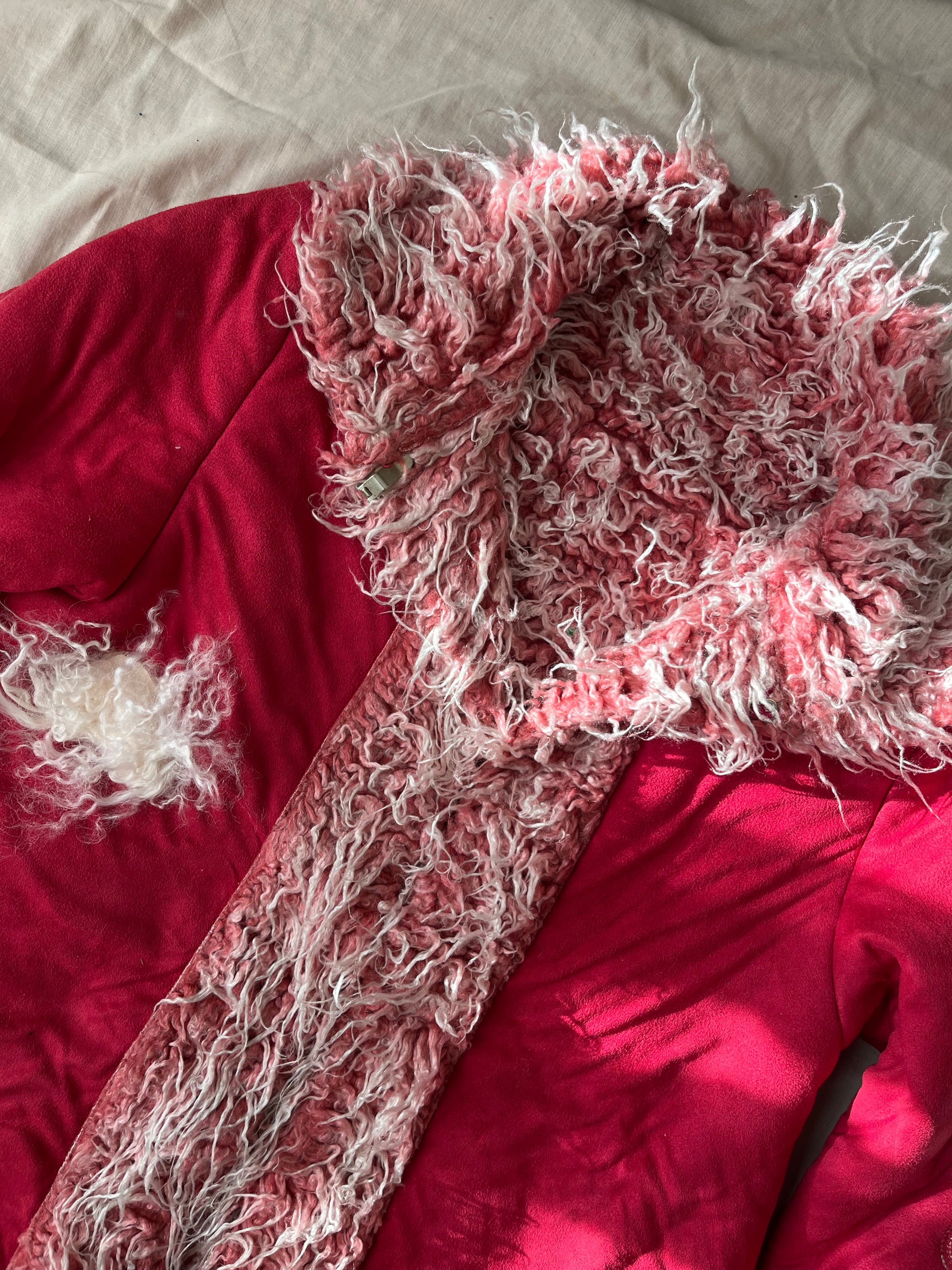 Beautiful 1990s/2000s dark pink afghan/penny lane coat! Has clasps on the front and has cute embroidered details. Labelled XL but doesn’t fit like that at all, definitely an S.