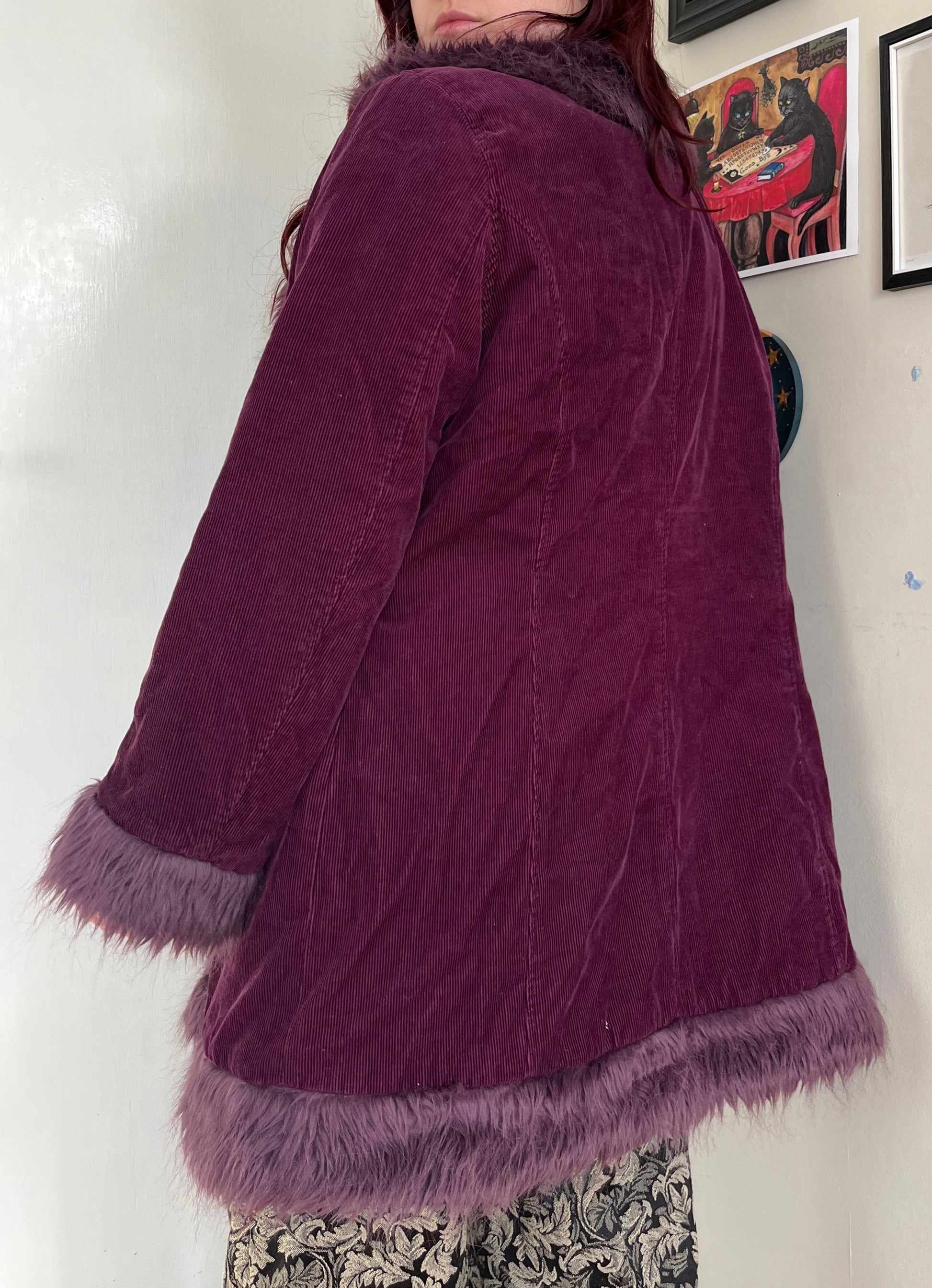 Purple Corduroy Afghan Coat UK 16-18