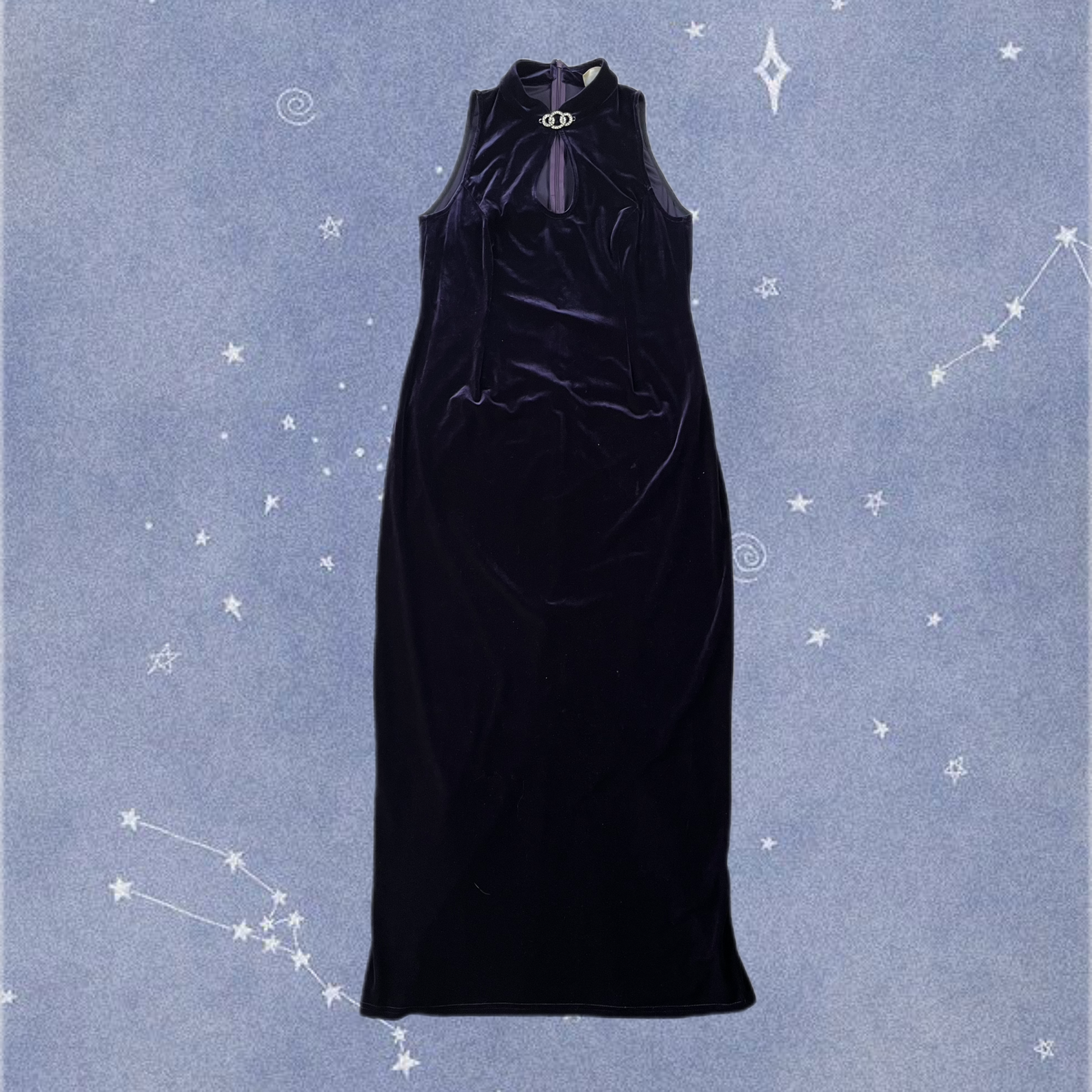 Stunning 1990s purple velvet maxi dress! This has a slightly stretchy fit, flattering shape and a key hole next line.