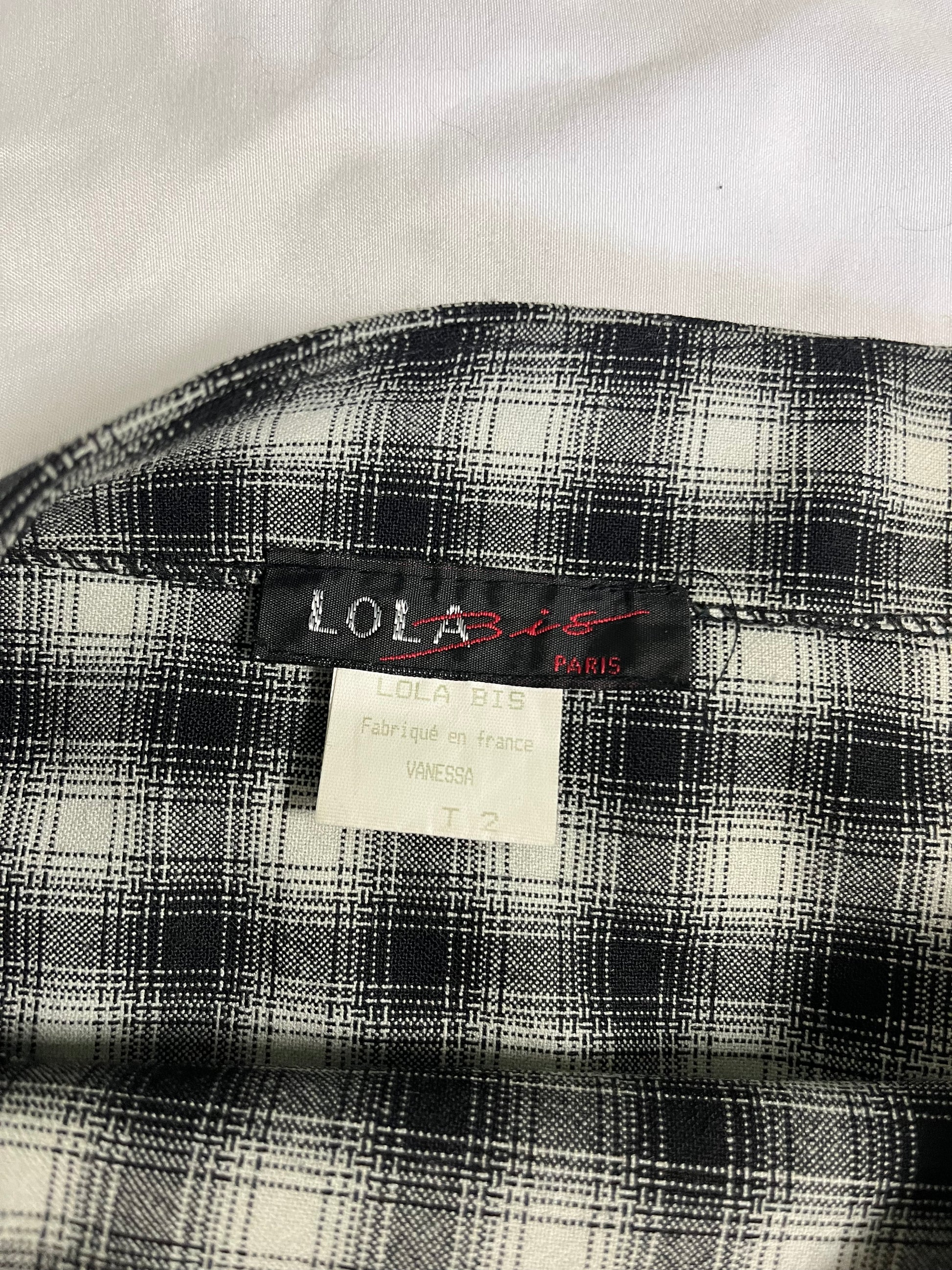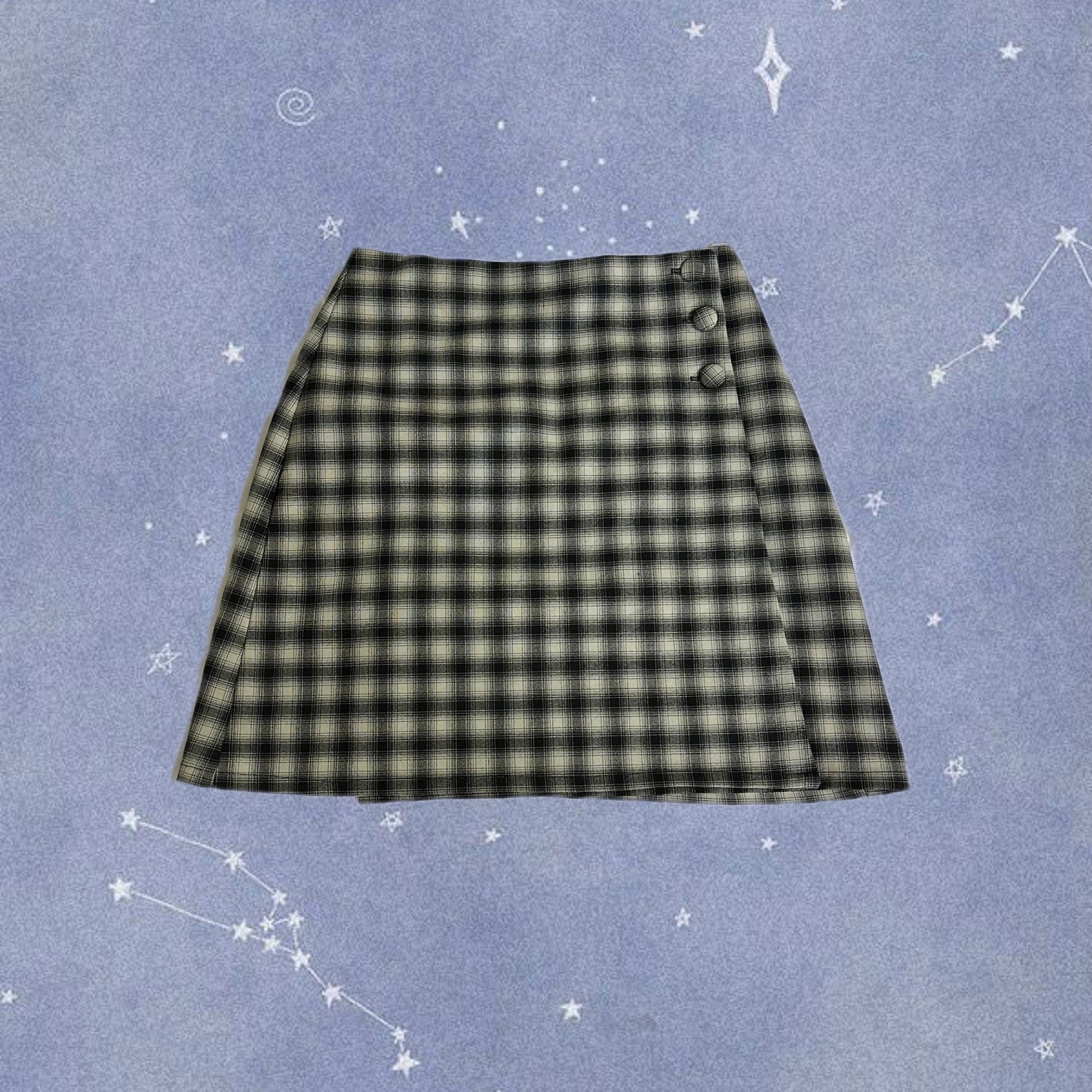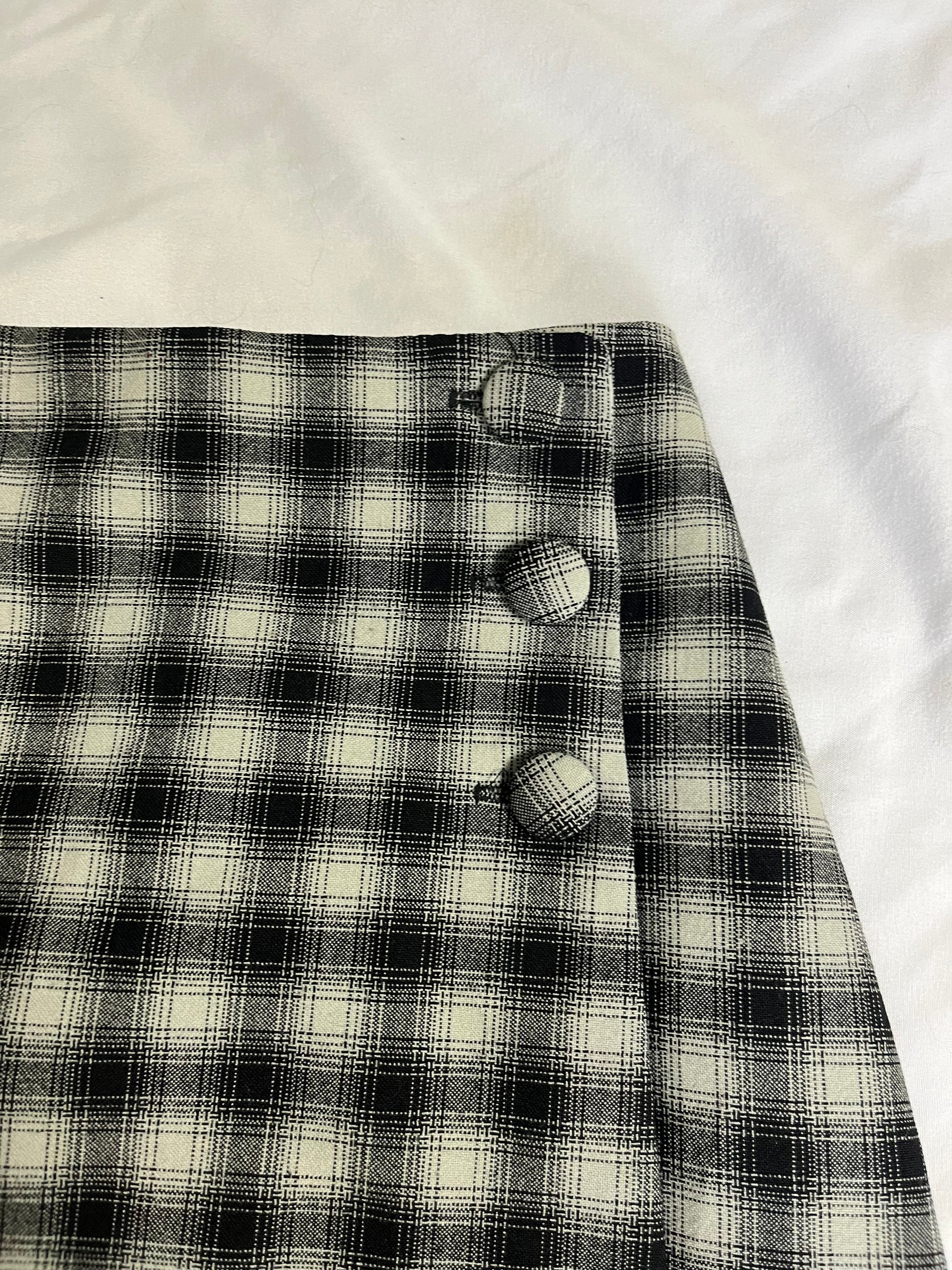 1990s tartan mini skirt! Black and white with buttons on the side.