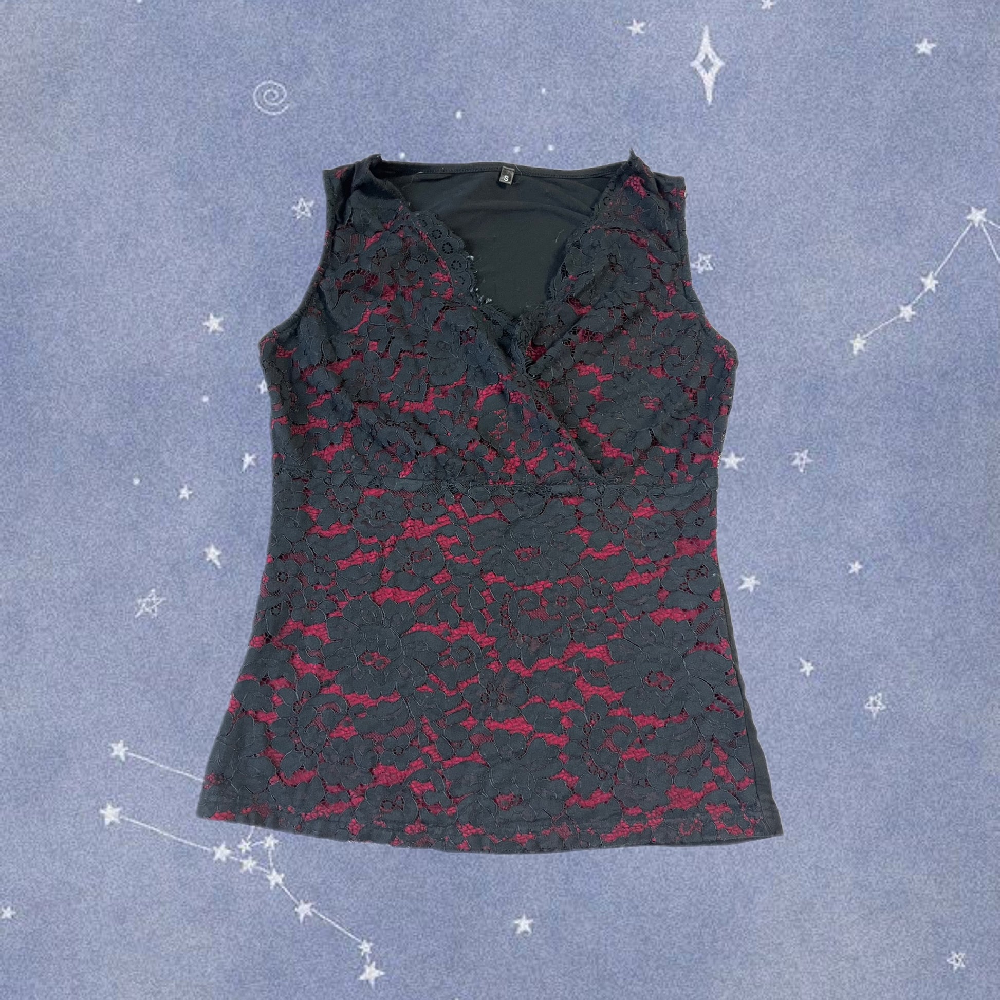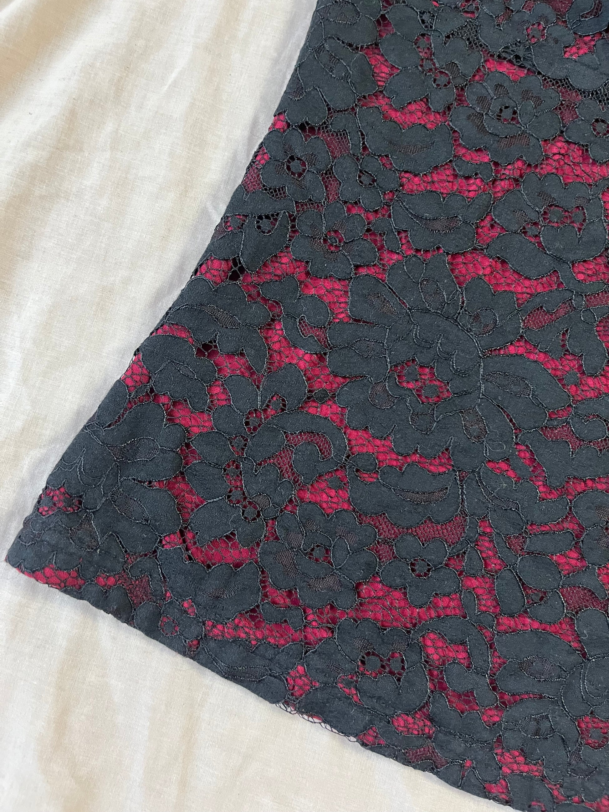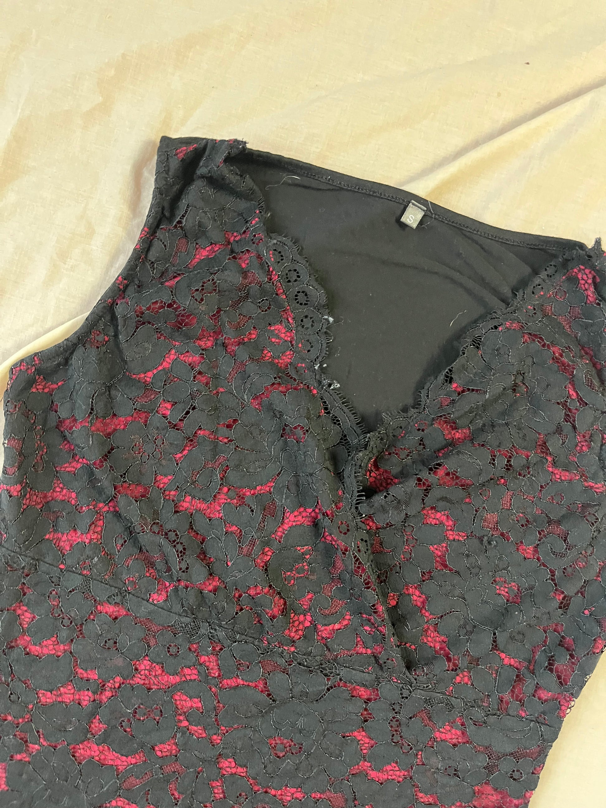 Gorgeous 2000s black and pink lacey top! Stretchy fit.