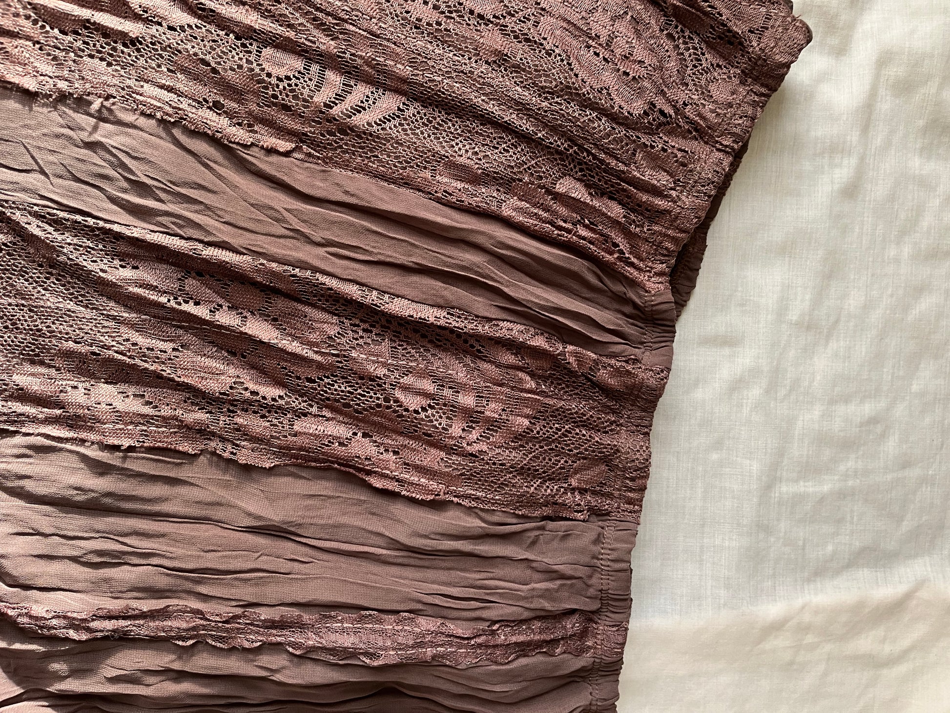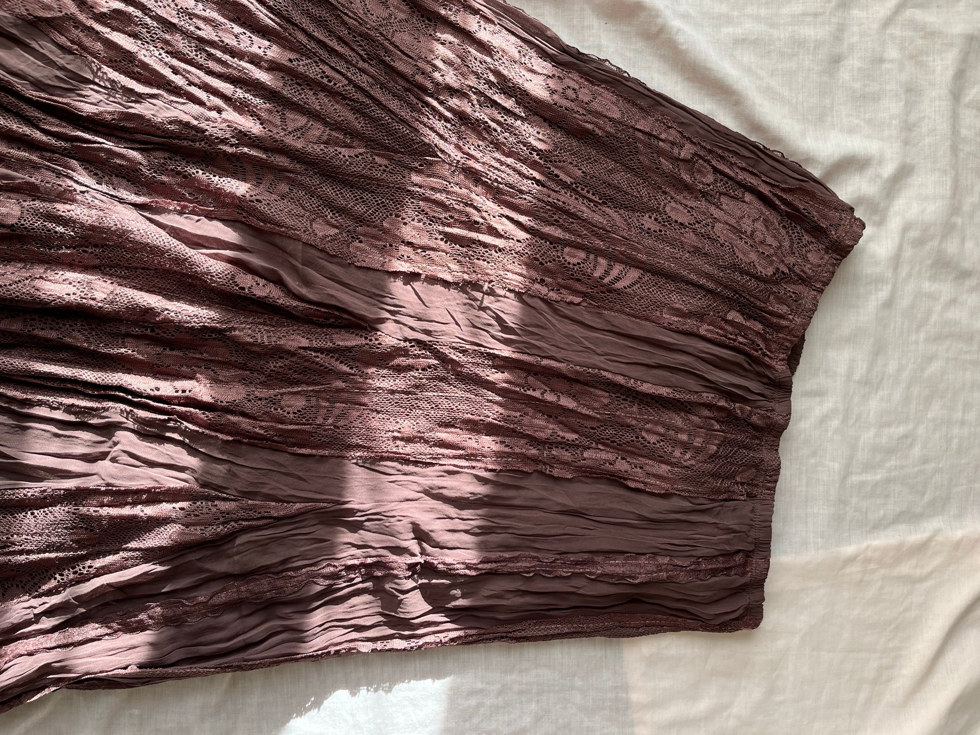 Gorgeous 1990s brown lacey maxi skirt! Stretchy waist so can fit multiple sizes.