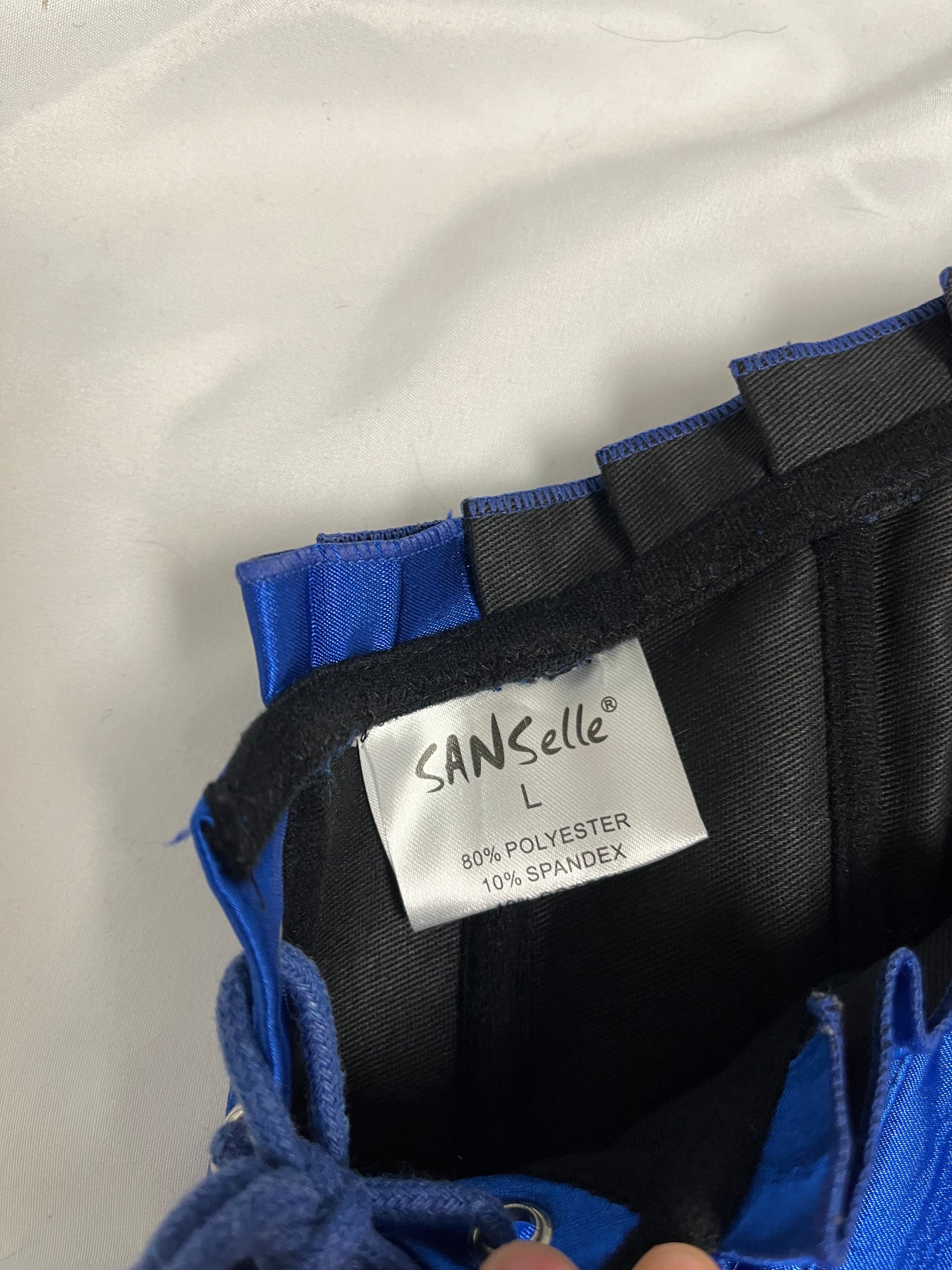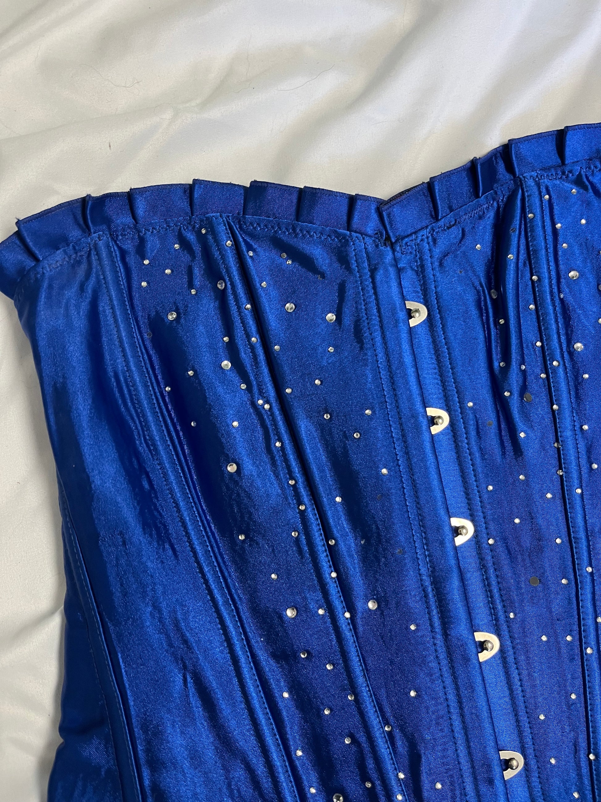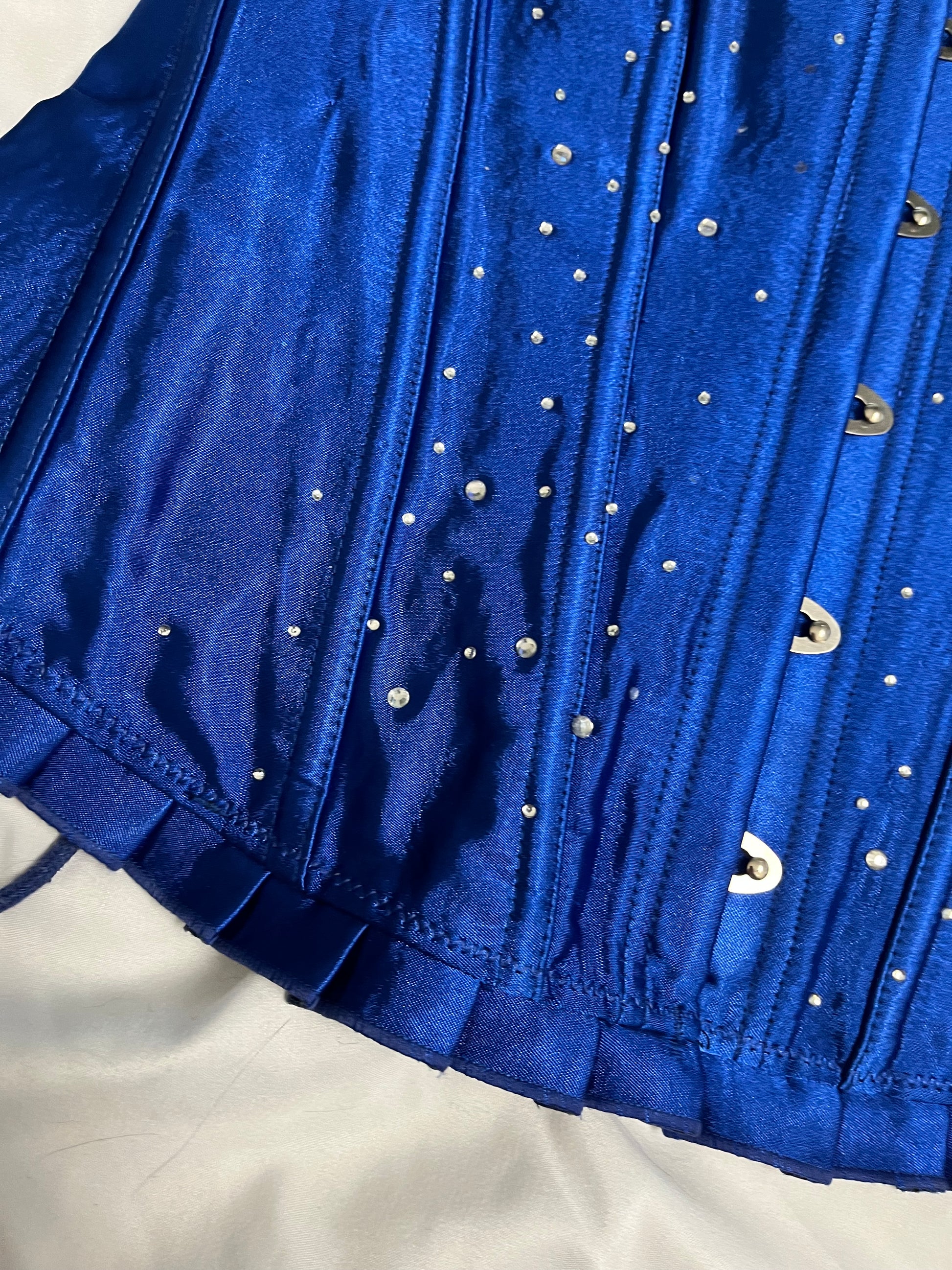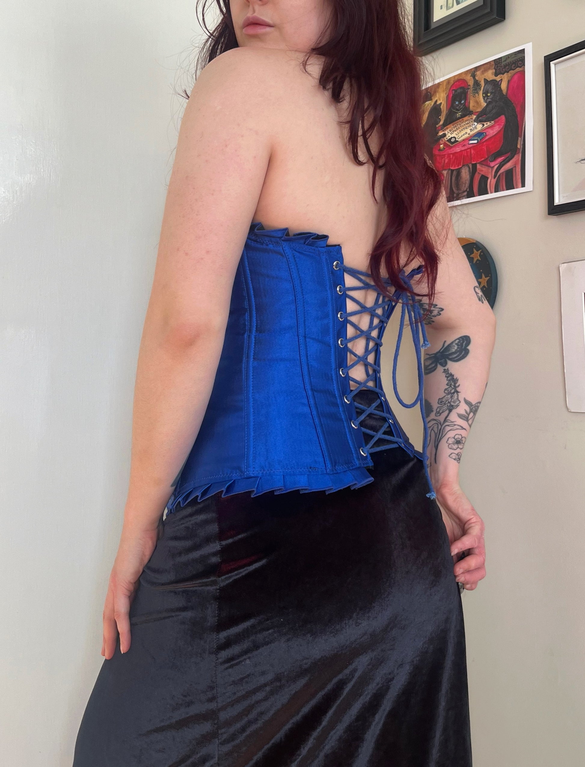 2000s blue satin corset top! This has boning through out and laces up at the back. Super flattering fit!