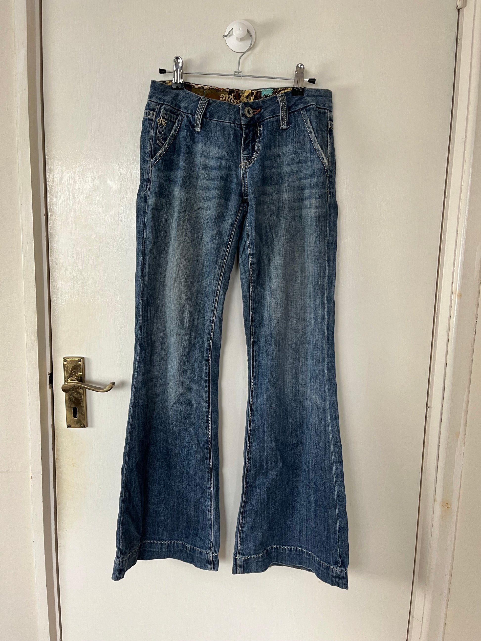 Amazing 2000s Miss Me Jeans with a mega flared leg! Has a flattering fit and low waist.