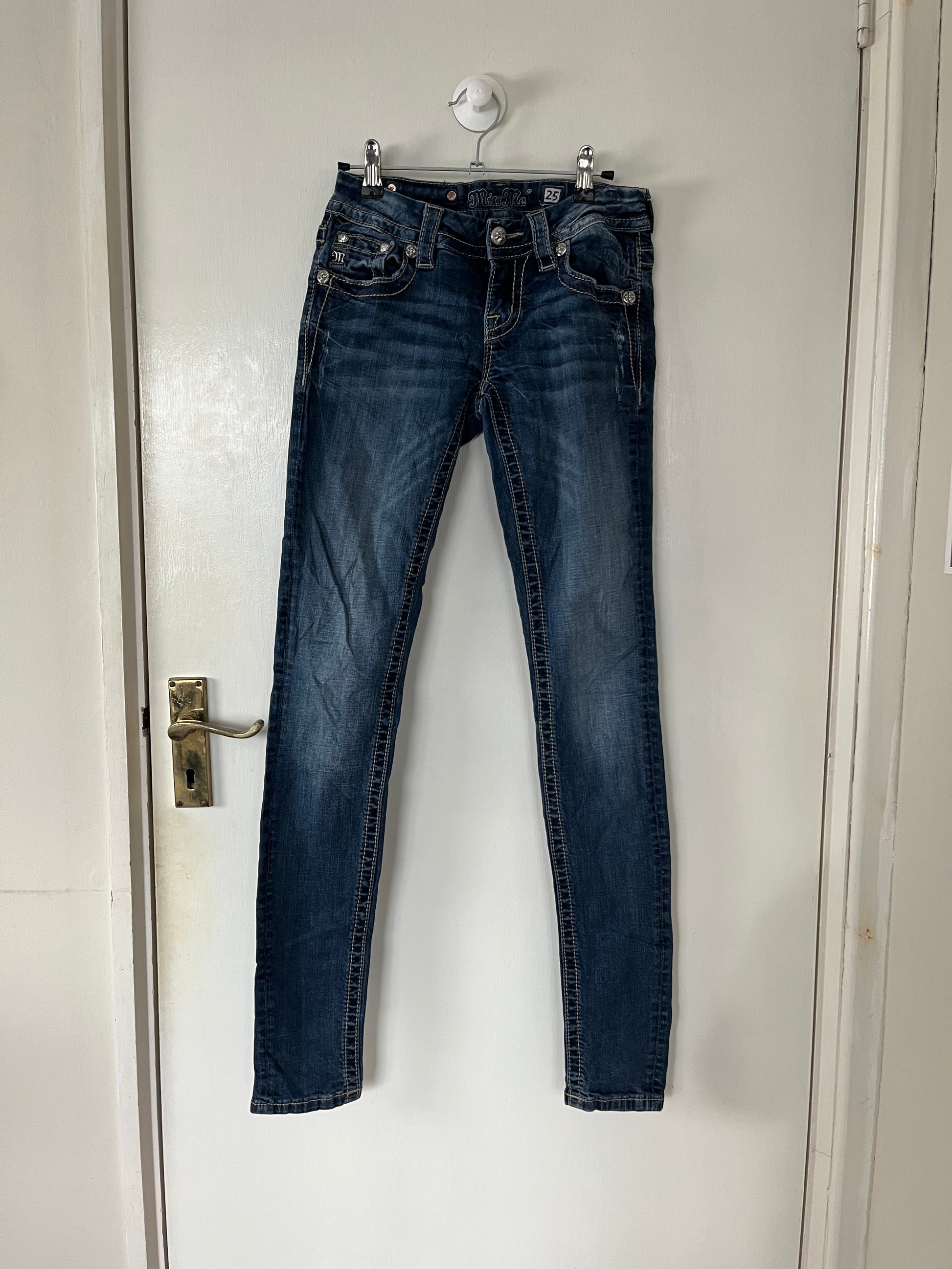 Amazing 2000s Miss Me Jeans with a skinny straight leg and low waist! Has amazing details on the back pockets and a flattering fit.